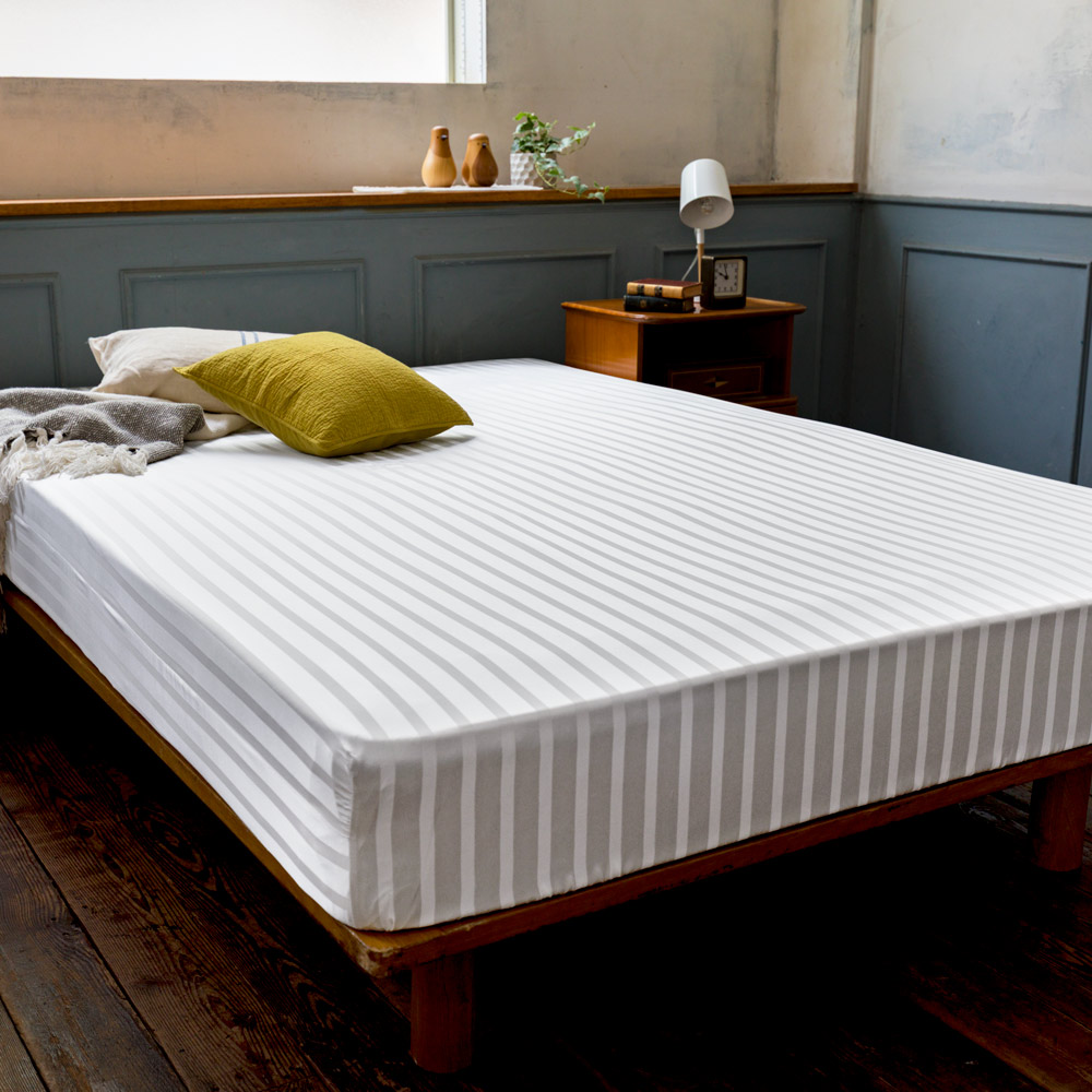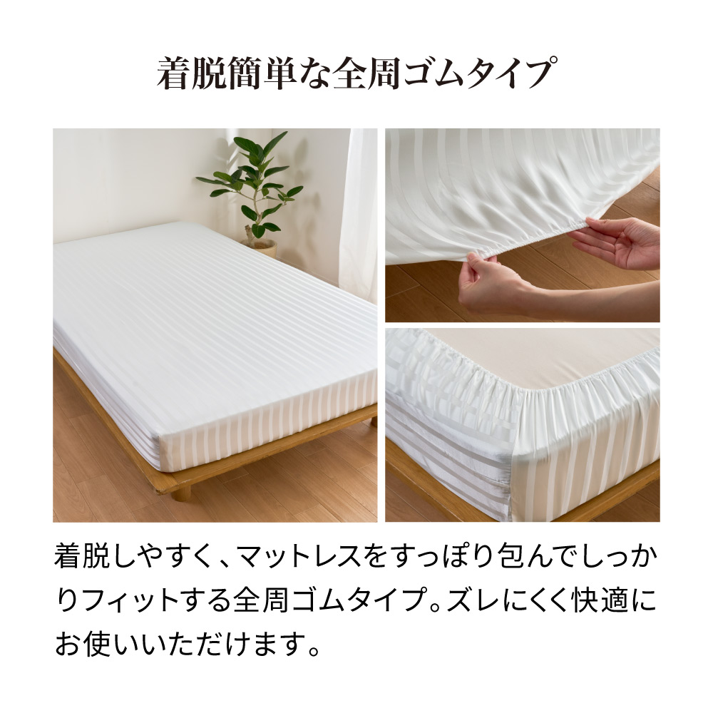 全周ゴム仕様だから着脱しやすく、面倒なシーツ交換もラクラク。マットレスをすっぽり包んでしっかりフィットし、ズレにくく快適にお使いいただけます。