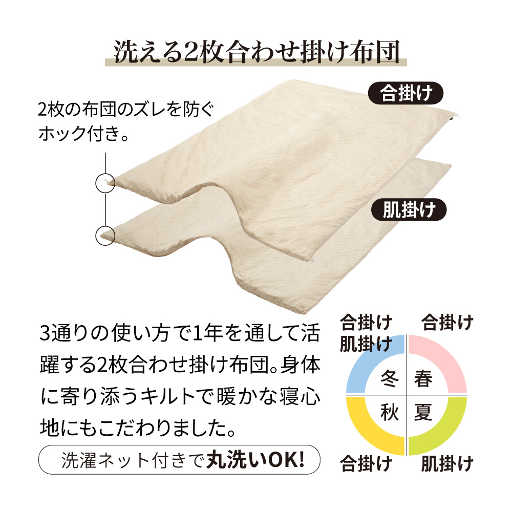 綿100%生地のダニゼロック布団 洗える2枚合わせ掛け布団(洗濯ネット付き) シングルロング 掛け布団 584001