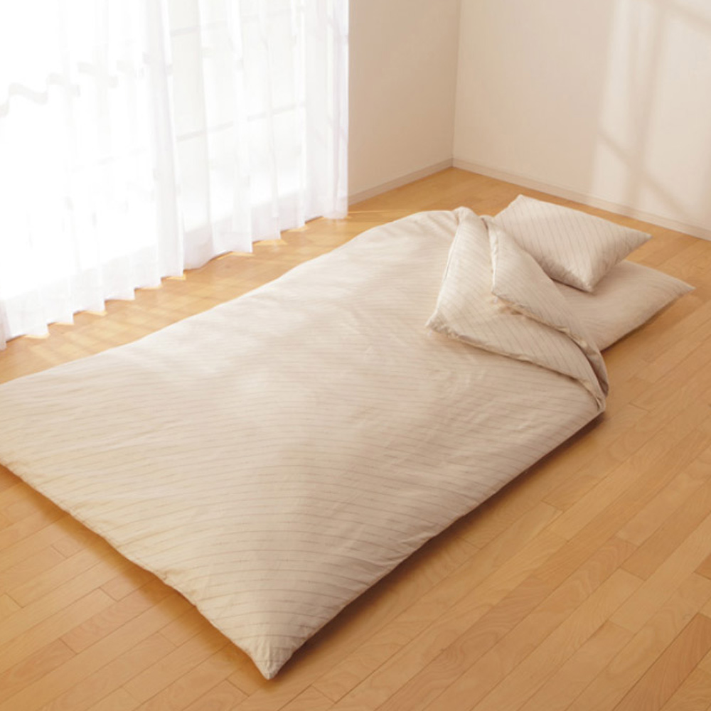 • (イ)ベージュ 綿100%の天然素材で安心&徹底的にダニ対策したい方にオススメしたい寝具。※画像は同シリーズの使用例。お届けは2枚合わせ掛け布団です。