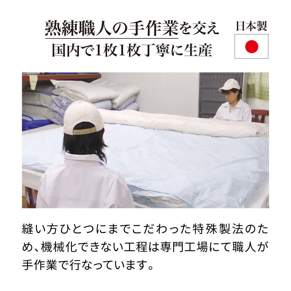 熟練職人の手作業を交え、国内で丁寧に生産される清潔な寝具