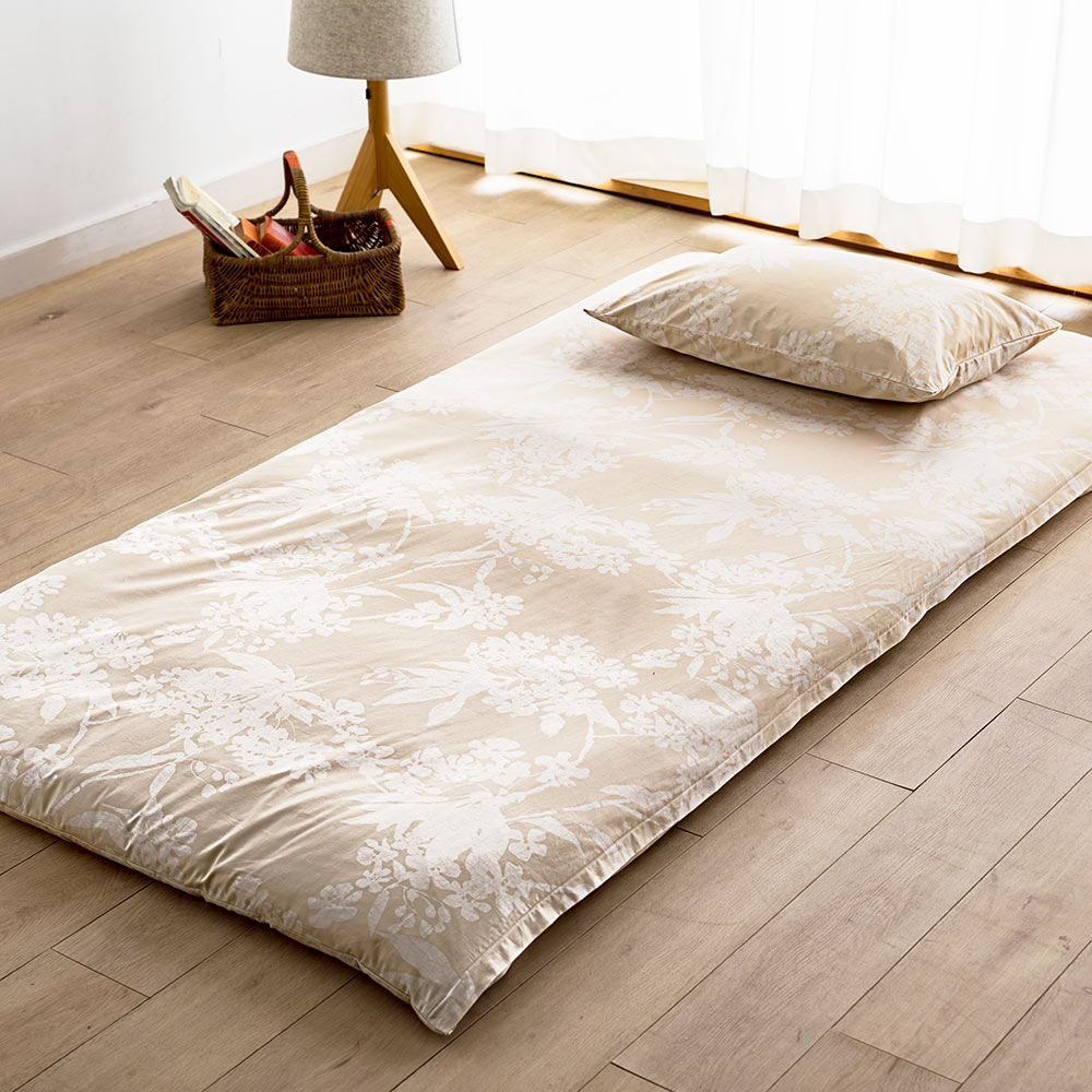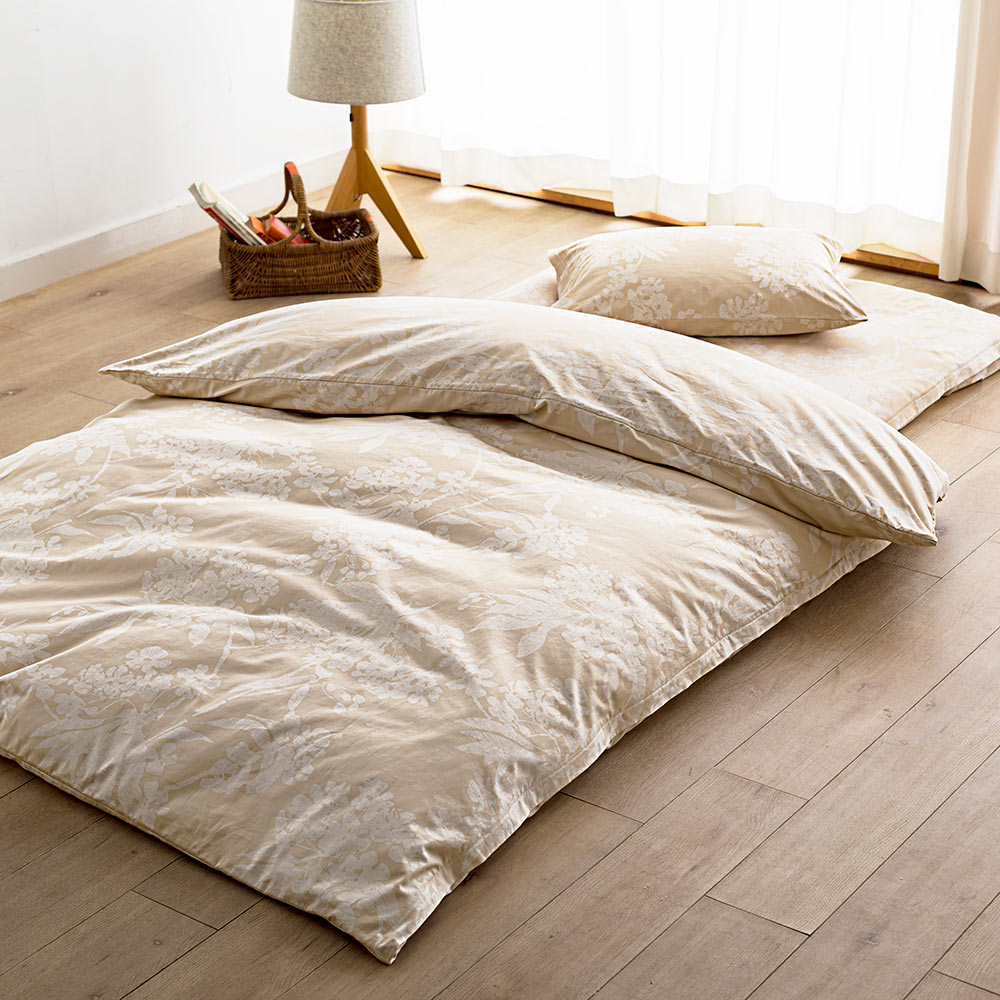 (ア)花柄ベージュ ※お届けはお得な敷布団用シングル3点セットです。
