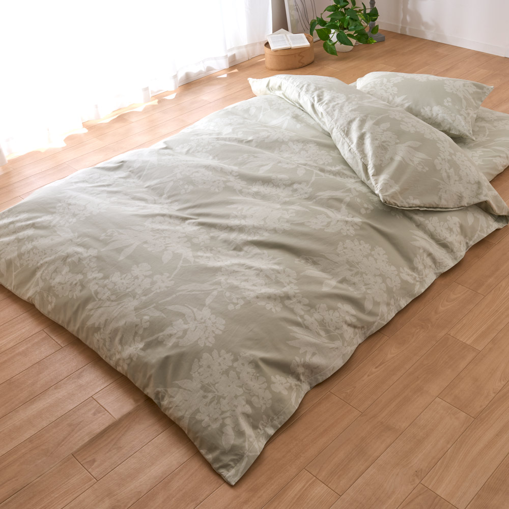 (イ)花柄グリーン ※お届けはお得な敷布団用シングル3点セットです。