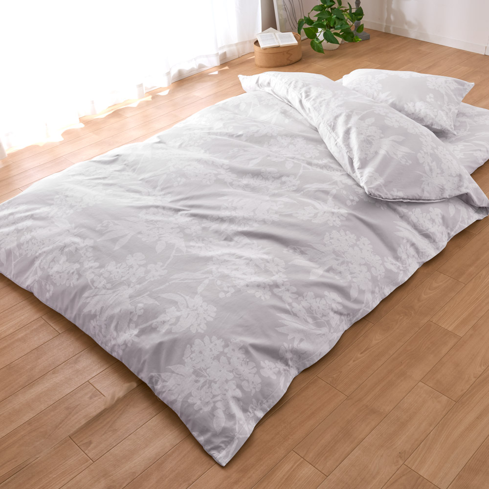(ウ)花柄グレー ※お届けはお得な敷布団用シングル3点セットです。