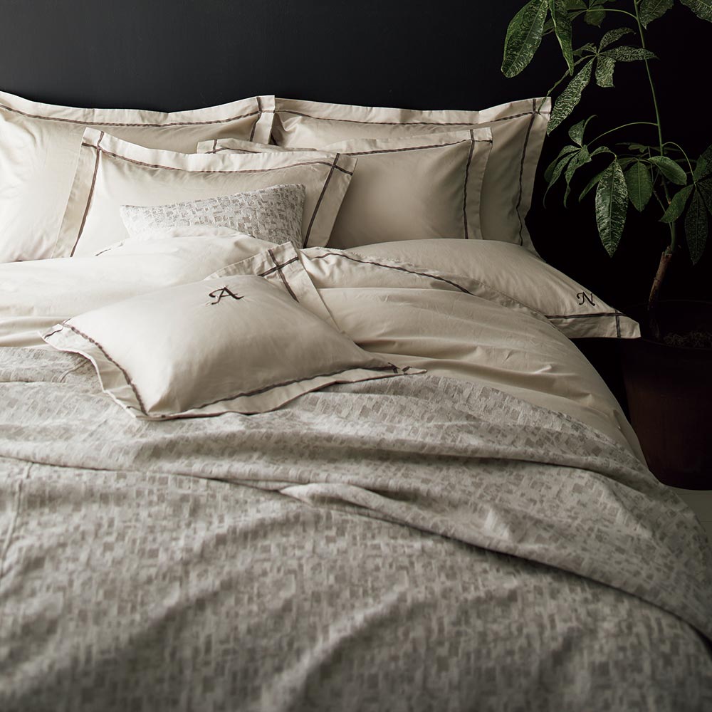 まるでシルクのような艶があり、肌触りの滑らかな肌触り。上質な糸の持つ自然な光沢が美しい高密度のサテン生地です。