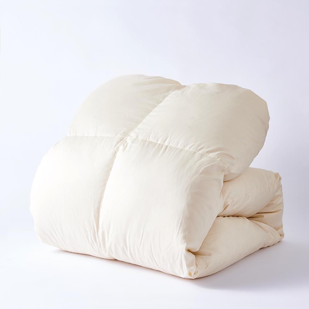 ■素材:側地…綿100%(80サテン・超長綿・PTFE加工)、中身…ホワイトダックダウン90・スモールフェザー10%(タンニン酸加工)