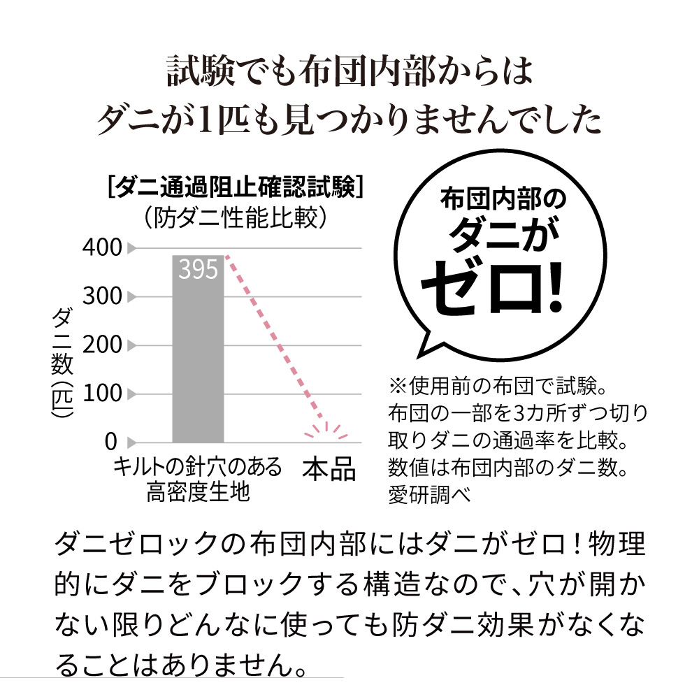 • 高密度生地だけではダメ!ダニゼロックなら徹底的に阻止します。