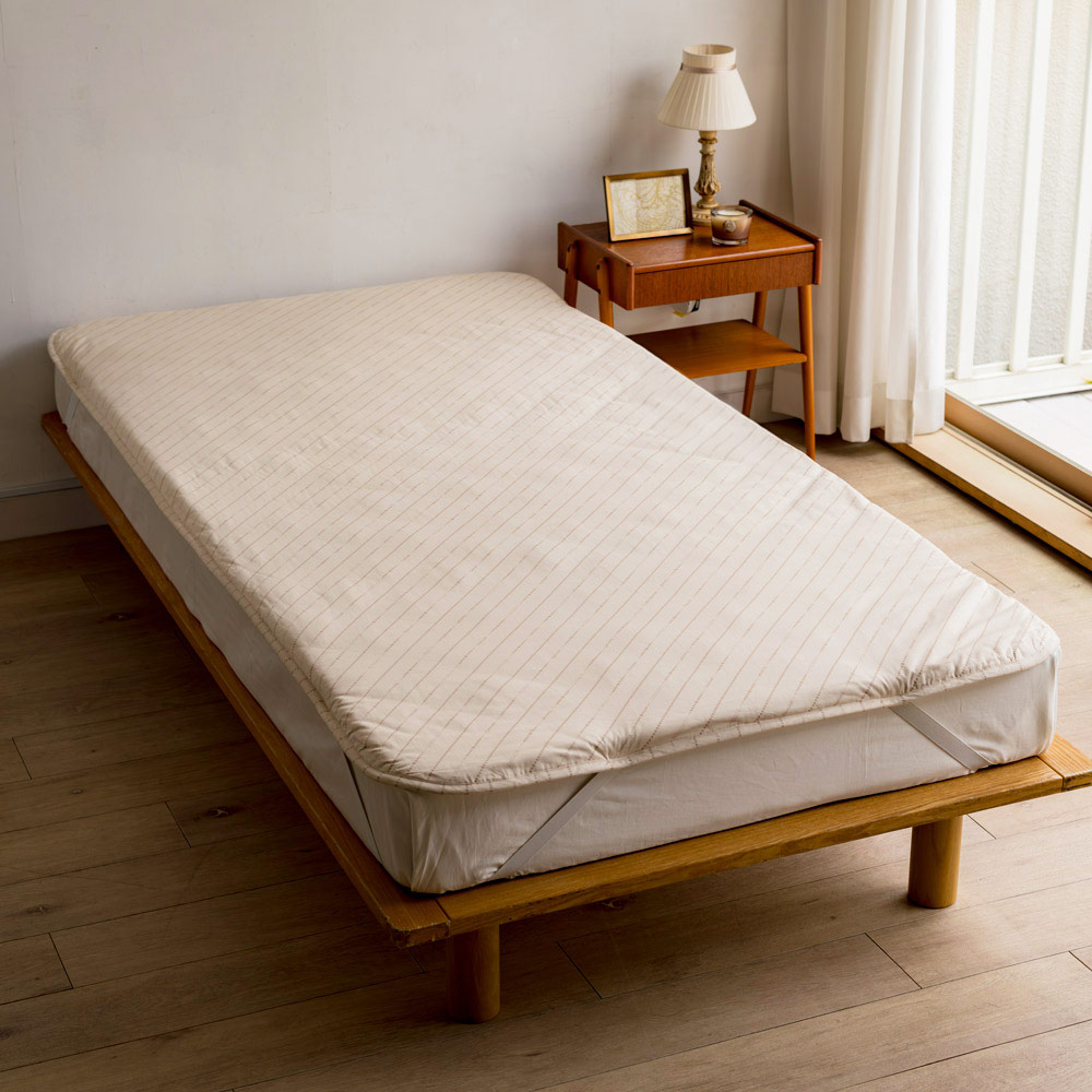 多湿でダニが好みやすい敷き寝具の環境改善におすすめ。中わたは制菌機能付きの「デオメディカルコットン」使用で清潔。クッション性のあるソフトな寝心地も魅力です。