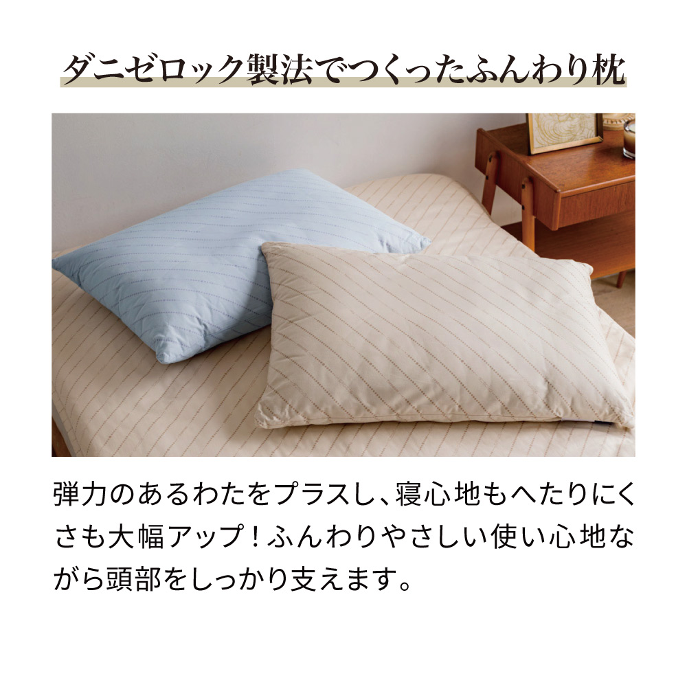 弾力のあるテイジン・ソロテックス(R)のわたをプラスし、寝心地もへたりにくさも大幅アップ!ふんわりやさしい使い心地ながら頭部をしっかり支えます。
