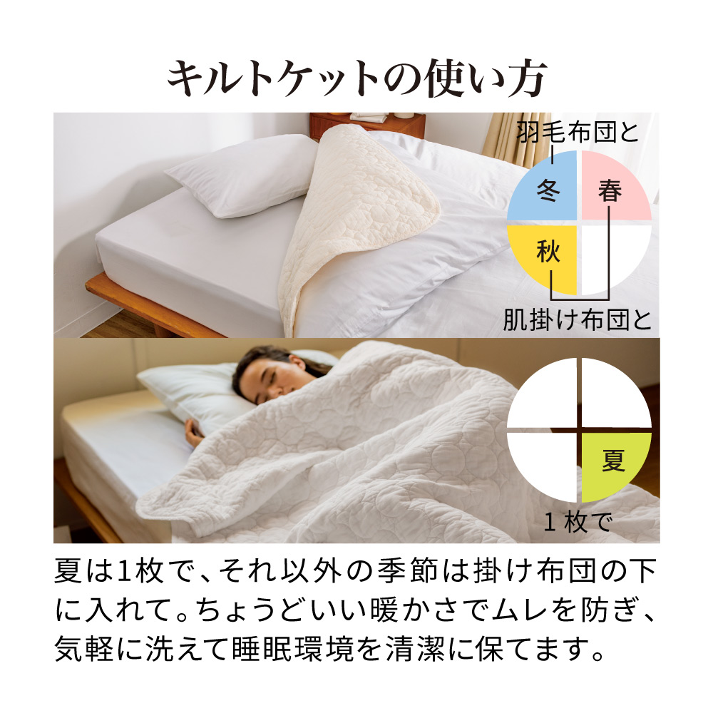 夏はムレにくくサラリ、冬はふんわり暖か。お手持ちの寝具と組み合わせてオールシーズン大活躍。