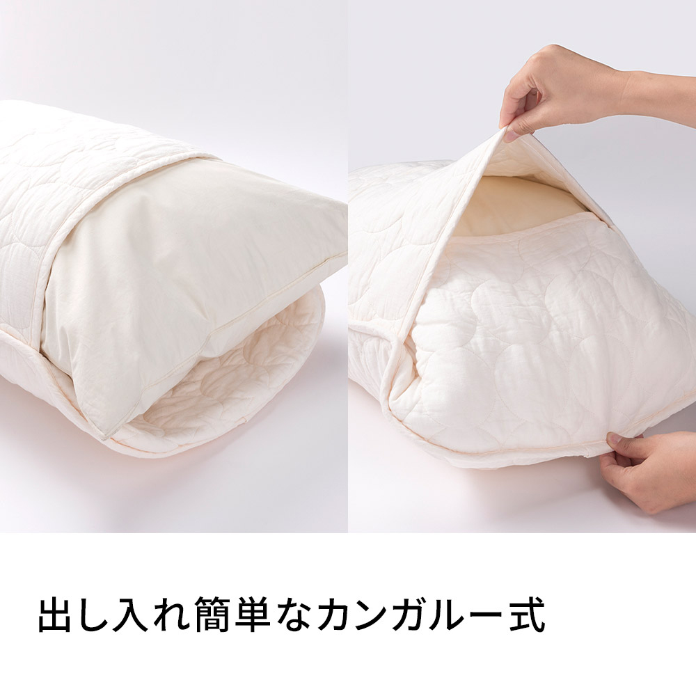 ピローケースはメーカー通常品と比べて中わた約30%増量。ふんわり感も吸水性もアップしています。