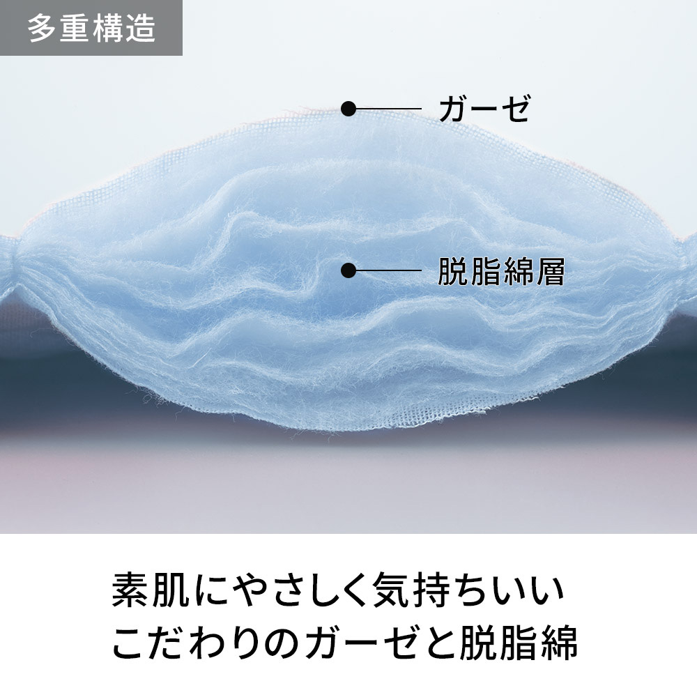 医療用レベルの純度まで不純物を取り除いた脱脂綿とガーゼで、水分をサッと吸収。しっかりとふき取れて気持ちがいい!