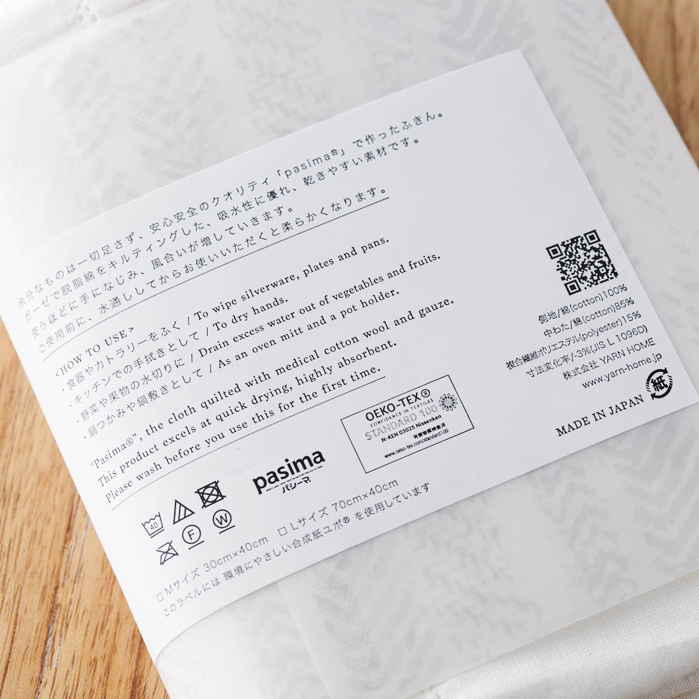 しっかりふき取れてサラリと乾く!医療用レベルの純度まで不純物を取り除いた脱脂綿とガーゼで作る『pasima (パシーマ)』のキッチンふきん。