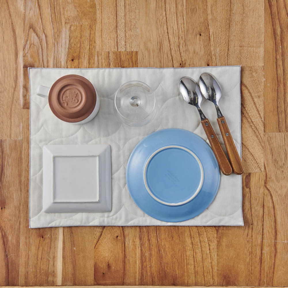 寝具展開のパシーマよりも中わた量を少なくし、台所しごとに最適の大きさと軽さです。