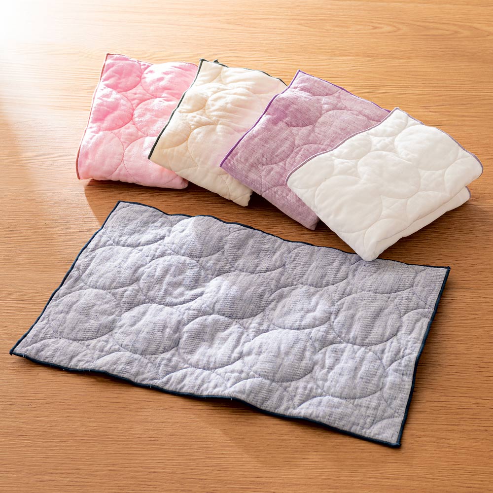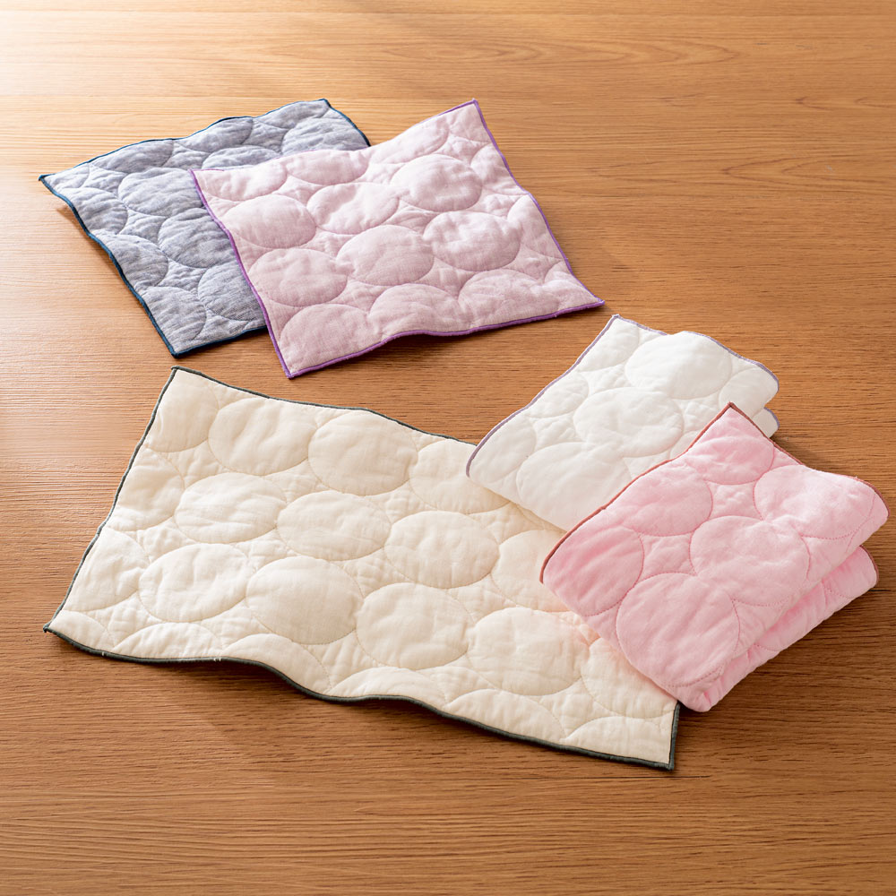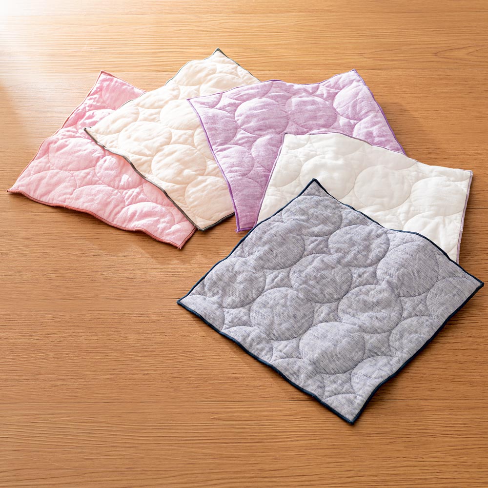 「水分をサッと吸収し、すぐに乾く」というパシーマ(R)生地の特徴は、実はふきんやタオルにぴったり。コンパクトなサイズなので洗いやすく、5色セットなので家族みんなでお使いいただけます。中綿たっぷりのふかふかキルトで使い心地も◎。