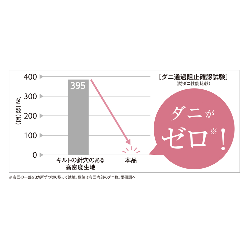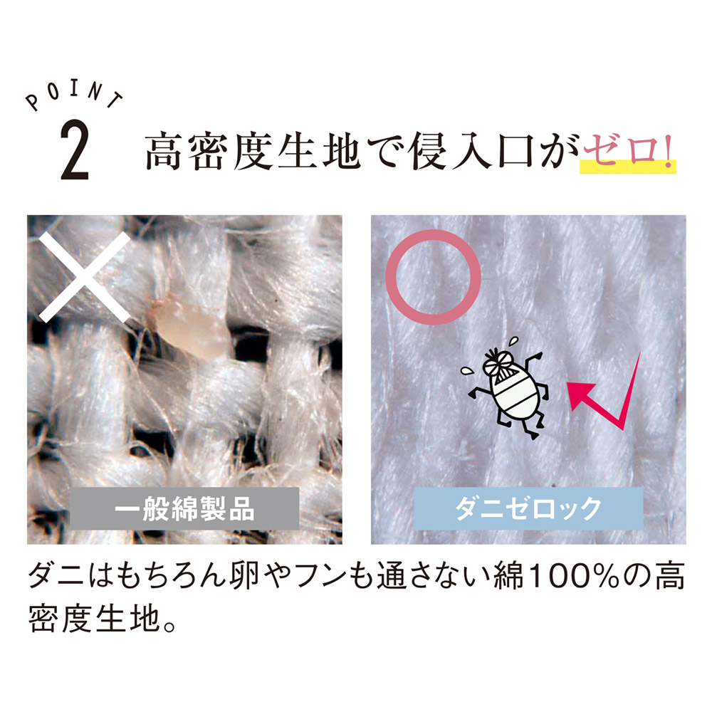 隙間なく織り上げられた特殊高密度の側生地はダニはもちろん、ダニの卵までシャットアウト。