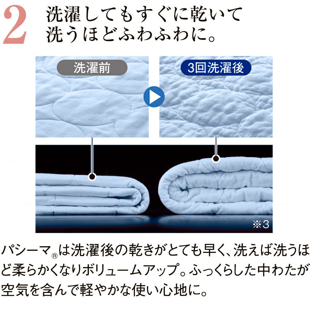 洗うほど育つ大人気寝具「パシーマ(R)」の生地を使用。