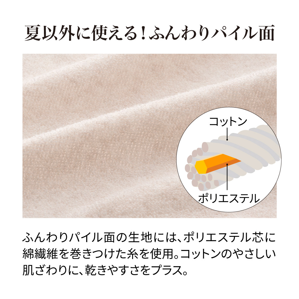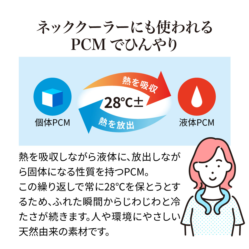 熱を吸収・発散して冷感を発揮するPCMの働きで、睡眠中の身体を心地よくクールダウン。生地自体も冷感素材な上、綿の肌ざわりが楽しめます。