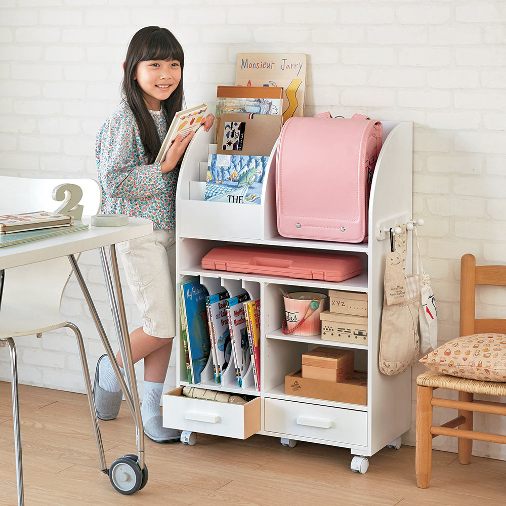 [国産]明日の準備ラクラク!しつけマルチワゴン(A4ランドセル対応) 絵本ラック 絵本棚 キッズ ベビー 529659