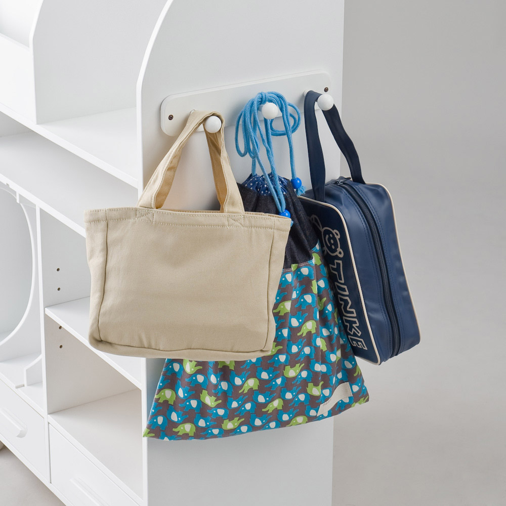小物収納に便利な3連フックは、左右どちらでもお好きな場所にお取り付けできます。
