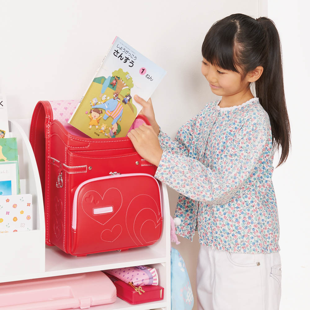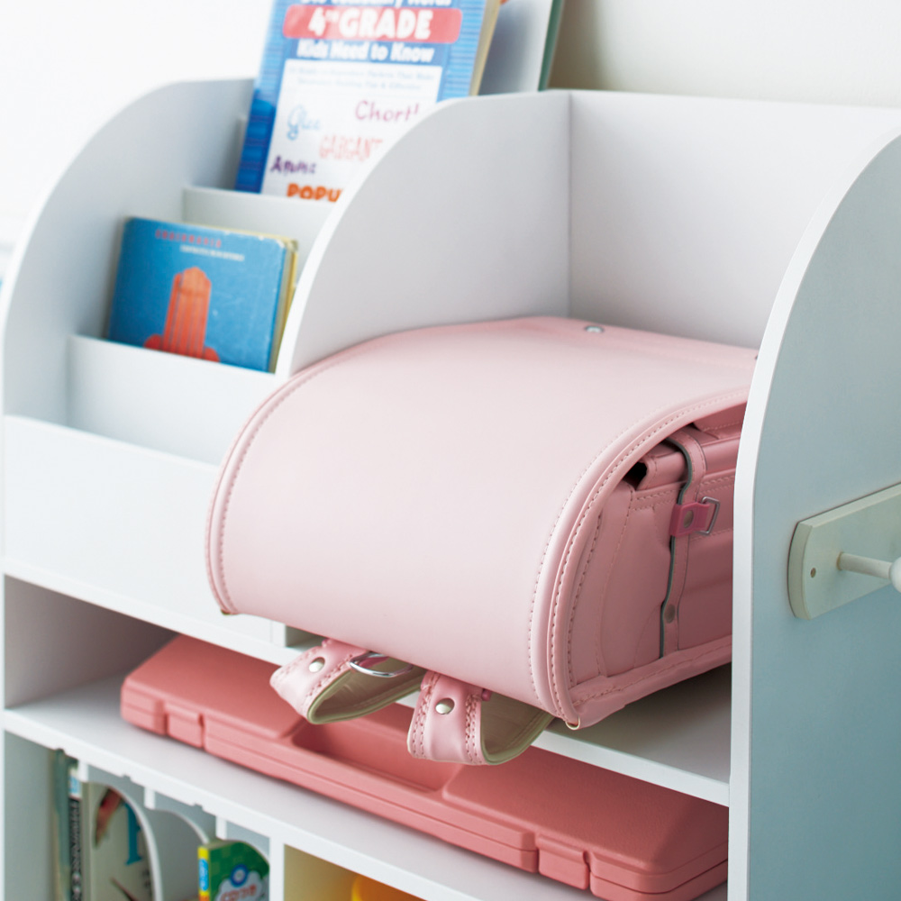 お値段はそのままにランドセル収納棚を4cmサイズUPしました。A4ファイル対応のランドセルもストレスなくラクラク収まります。「1年生から6年生まで、子供の用途に合わせて使いたい」