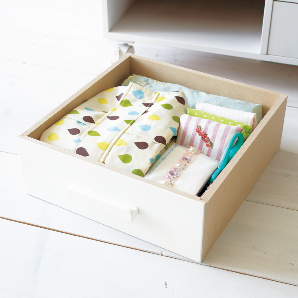 ・下段の引出しは抜き出して使えるから、細やかな文具でも奥まで整頓して収納する事ができます。