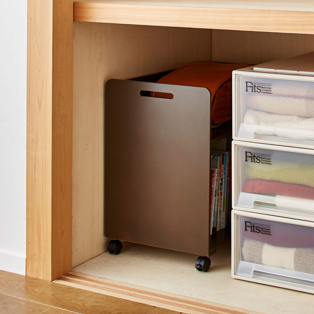 押し入れのすき間に収納スペースを確保。(ア)ダークブラウン