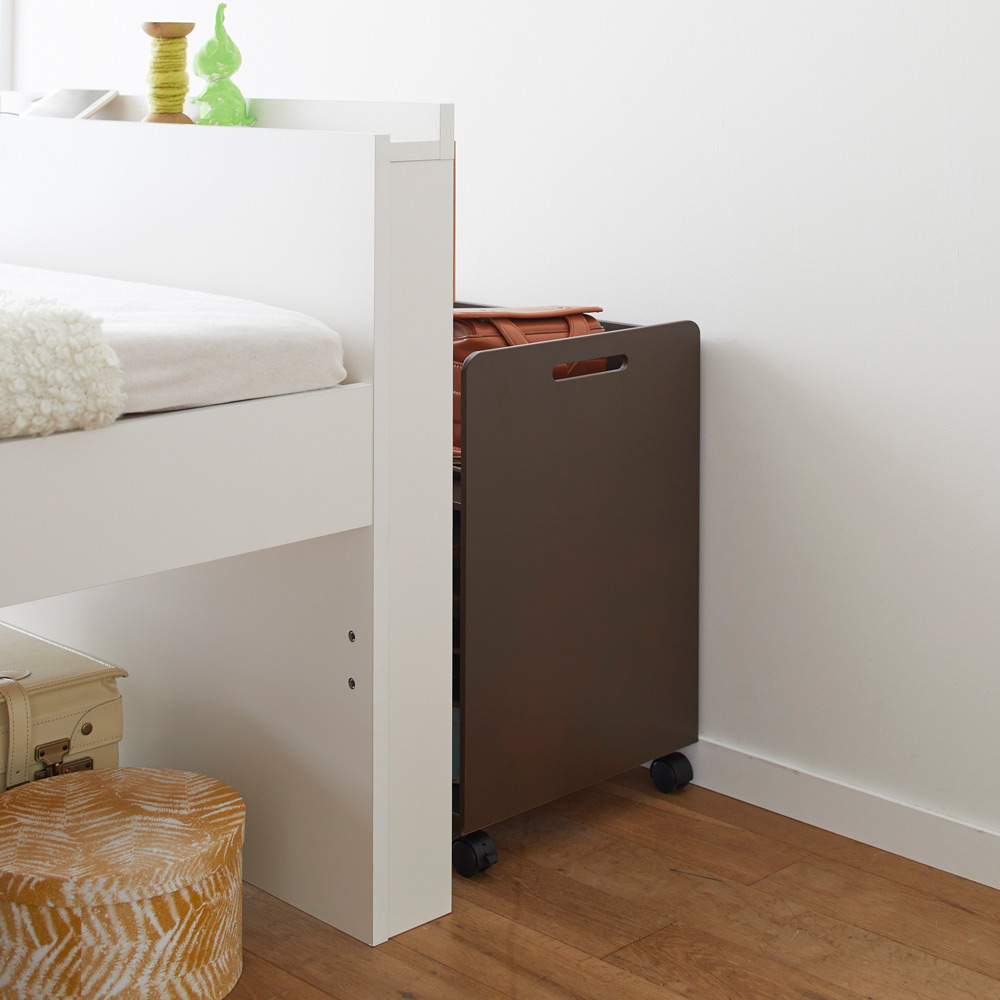 ベッドと壁の隙間で使えば収納付きベッドとして。(ア)ダークブラウン