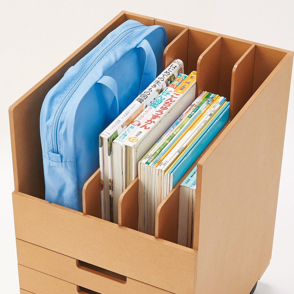 【ファイル&引き出しタイプ】A4サイズまでの教科書類を、背表紙が上向きに入れられるから、見やすく取り出しやすい。