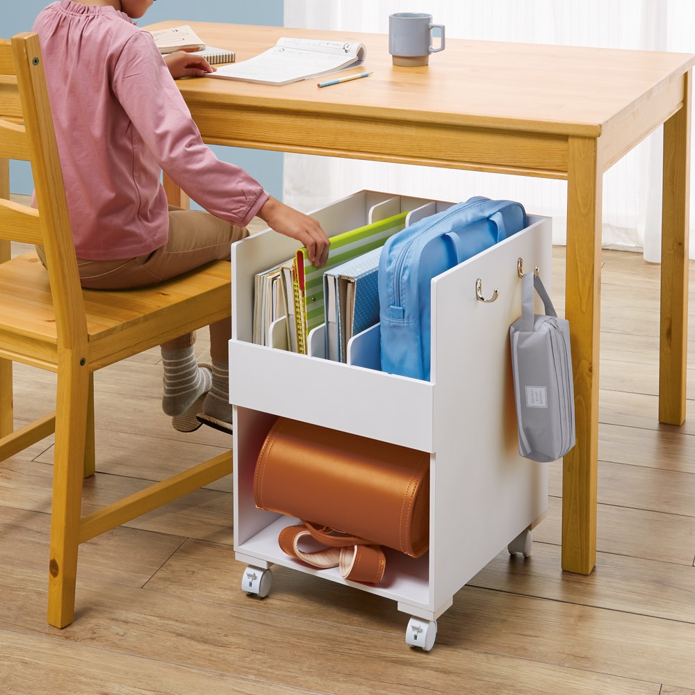 宿題が終わった後に、食事の前に、食卓下にすっぽりしまえてスッキリ!さらにこちらのタイプならランドセルもしまえます◎