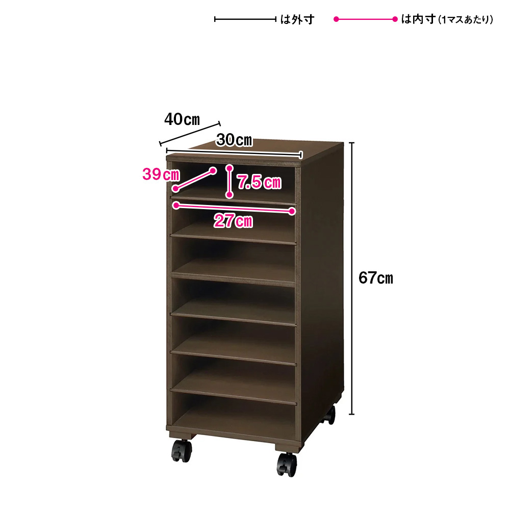 【高さ67cmタイプ】幅30cm 奥行40cm 高さ67cm、スライド棚板5枚付き