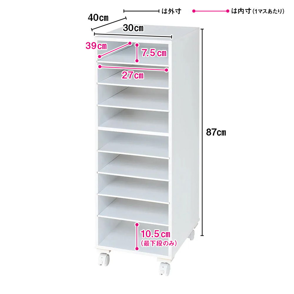 【高さ87cmタイプ】幅30cm 奥行40cm 高さ87cm、スライド棚板7枚付き