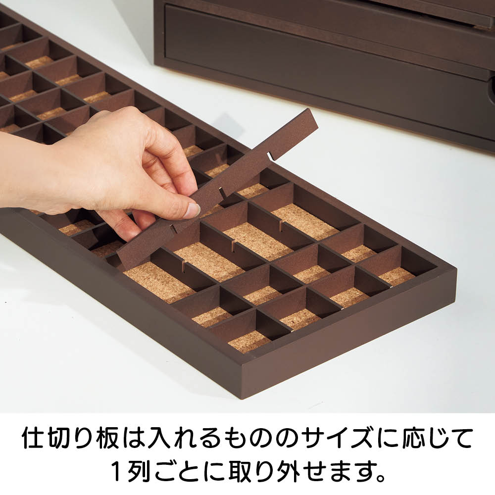 お届け時の1段目と2段目は、格子状の収納。仕切りは1列ごとの取り外しが可能です。