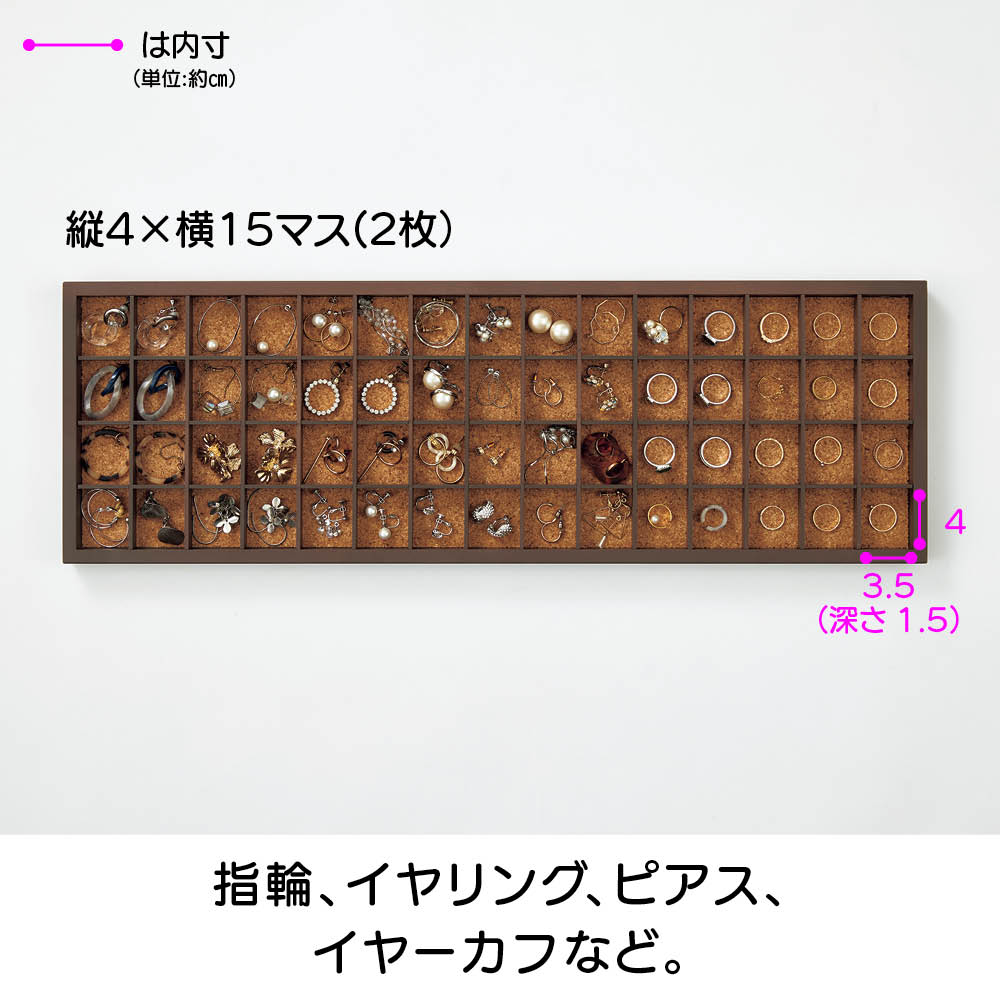 お届け時の3段目と4段目は、タテ長の収納。仕切りは取り外せるので、大ぶりのパールネックレスなども入れられます。