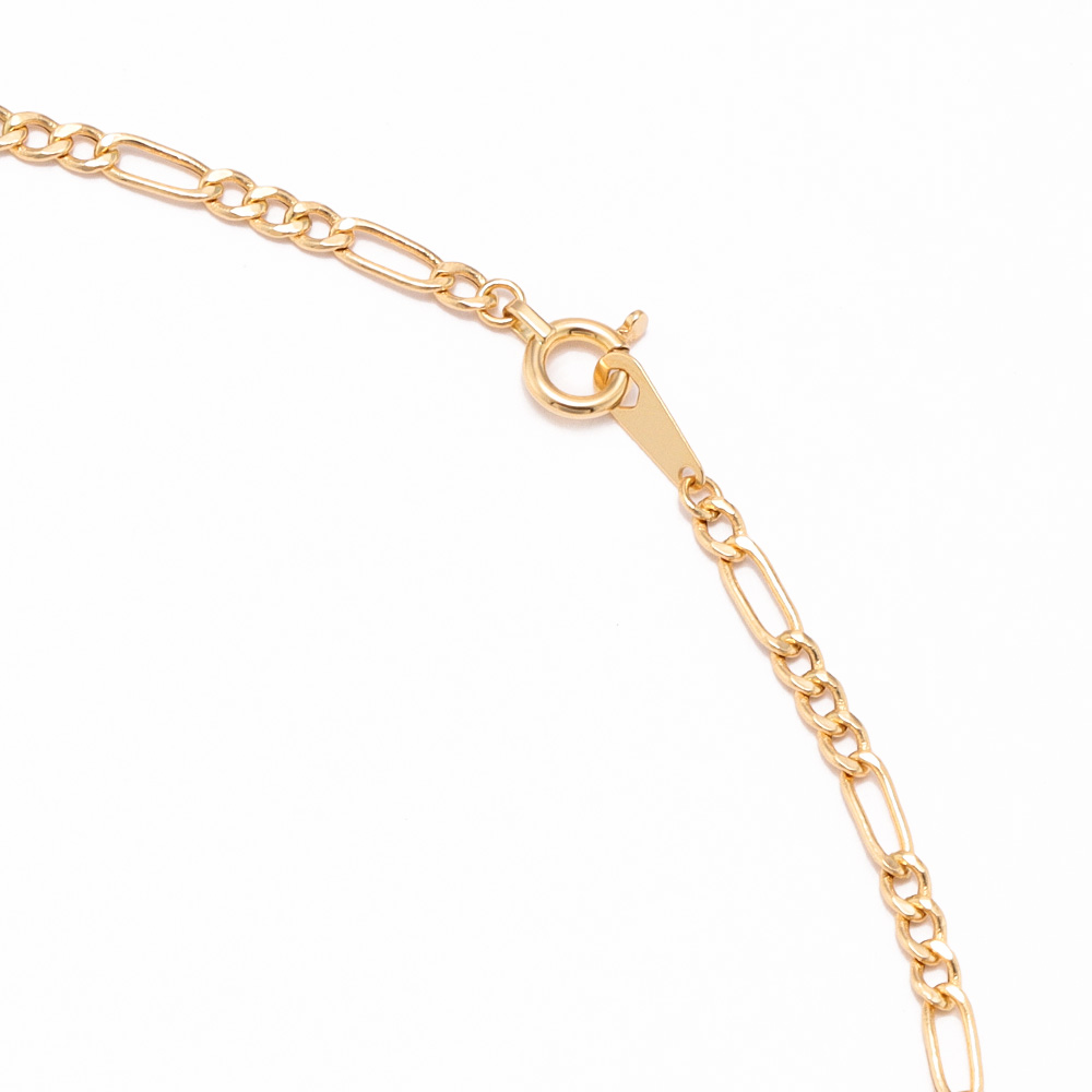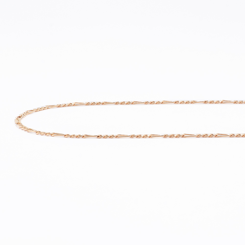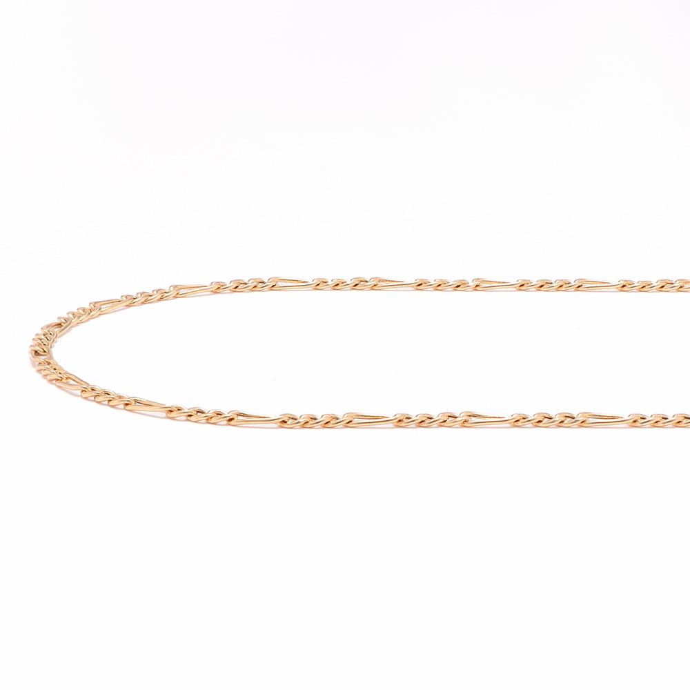 喜平とクリップのコマをグラフィカルにアレンジしたフィガロチェーン。商品画像の説明