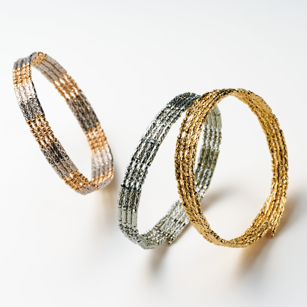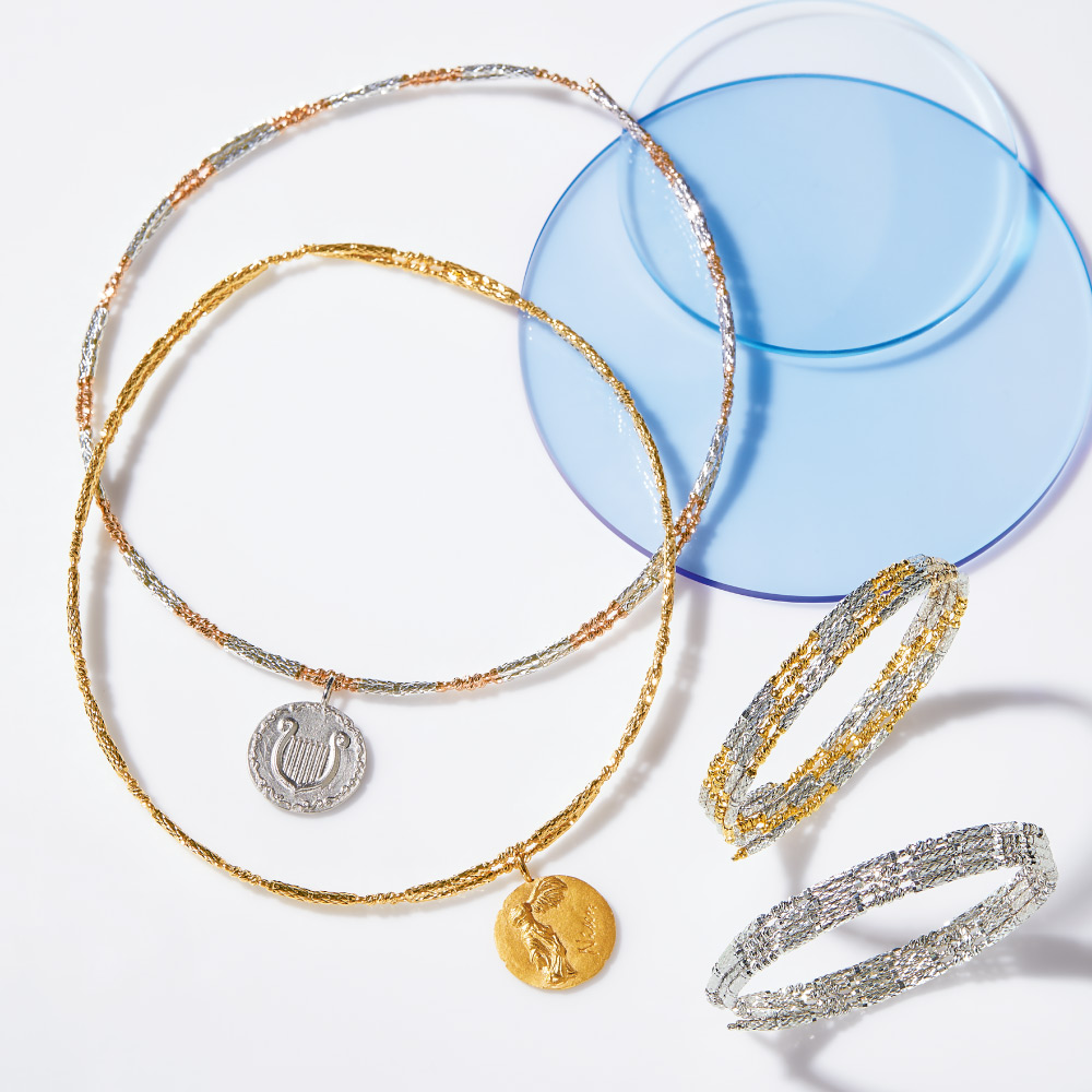 マグネット ネックレス兼ブレスレット シリーズ /左はPG×WGタイプ(商品番号J10233)、右はK18タイプ(商品番号J10234)です。