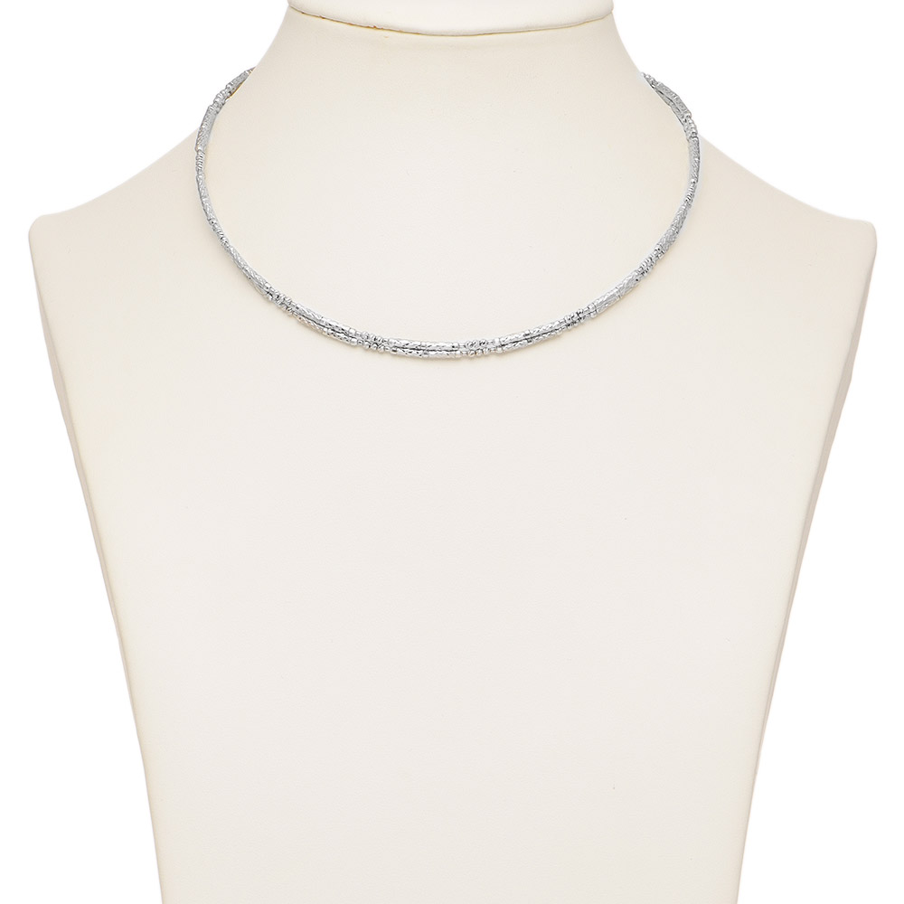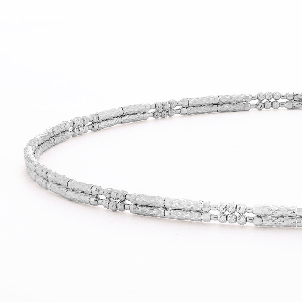 パイプパーツと丸玉パーツに施された細やかなカットが、華やかに煌めく人気アイテム。パーツ内部全周にマグネット入りで、セミロング、チョーカー、Yタイプのネックレス、ぐるぐると巻きつけてブレスレット、と自在にアレンジできます。商品画像の説明。