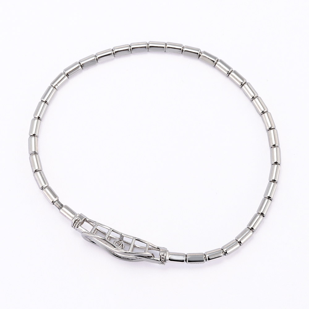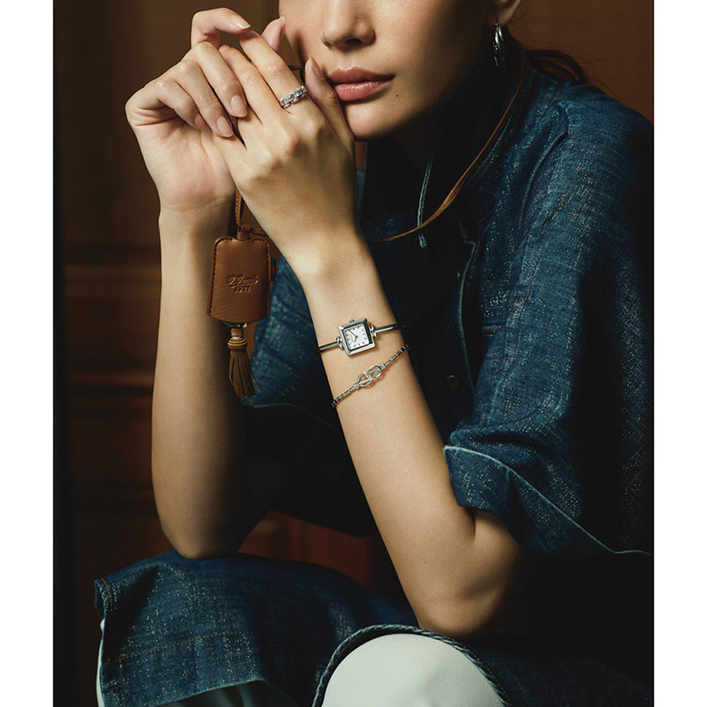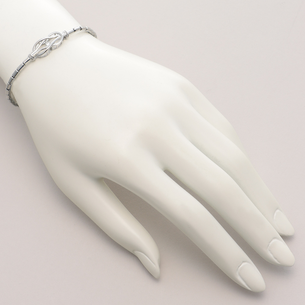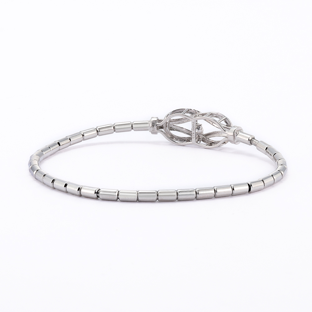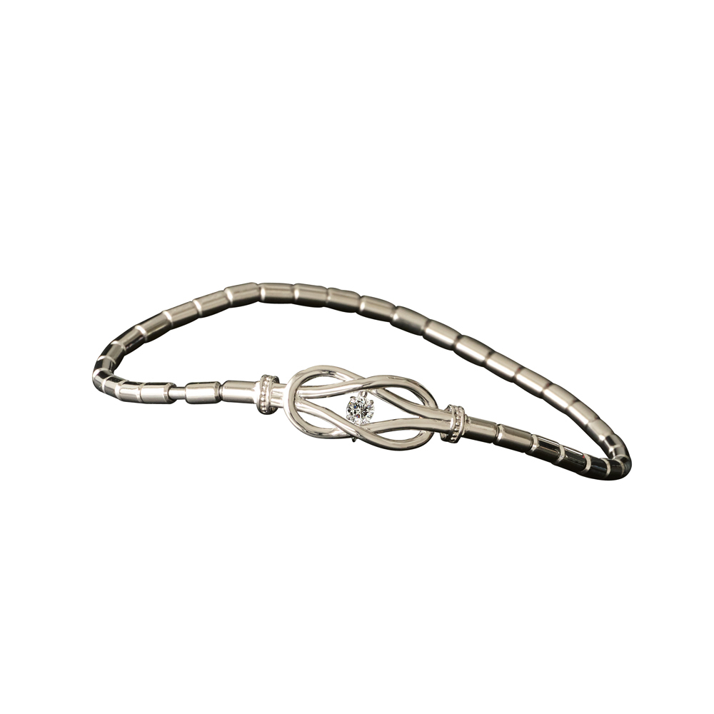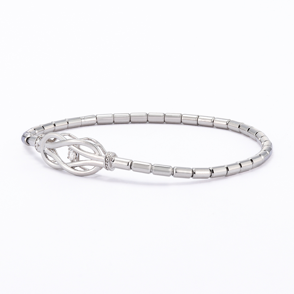 インフィニティーモチーフの中には、「ダンシングストーン」と呼ばれるダイヤが繊細に揺れ動き、清冽な光を放ちます。伸縮仕様の簡単な着脱も楽しんで。