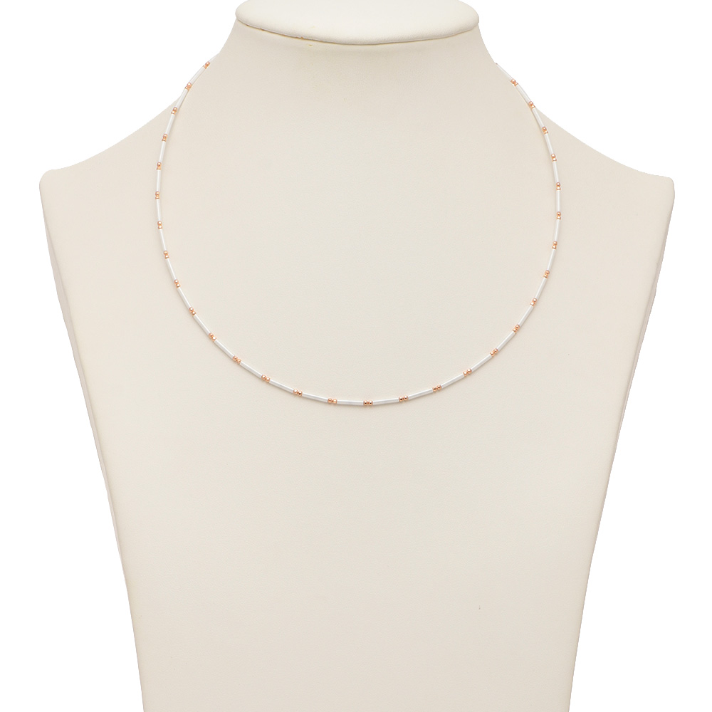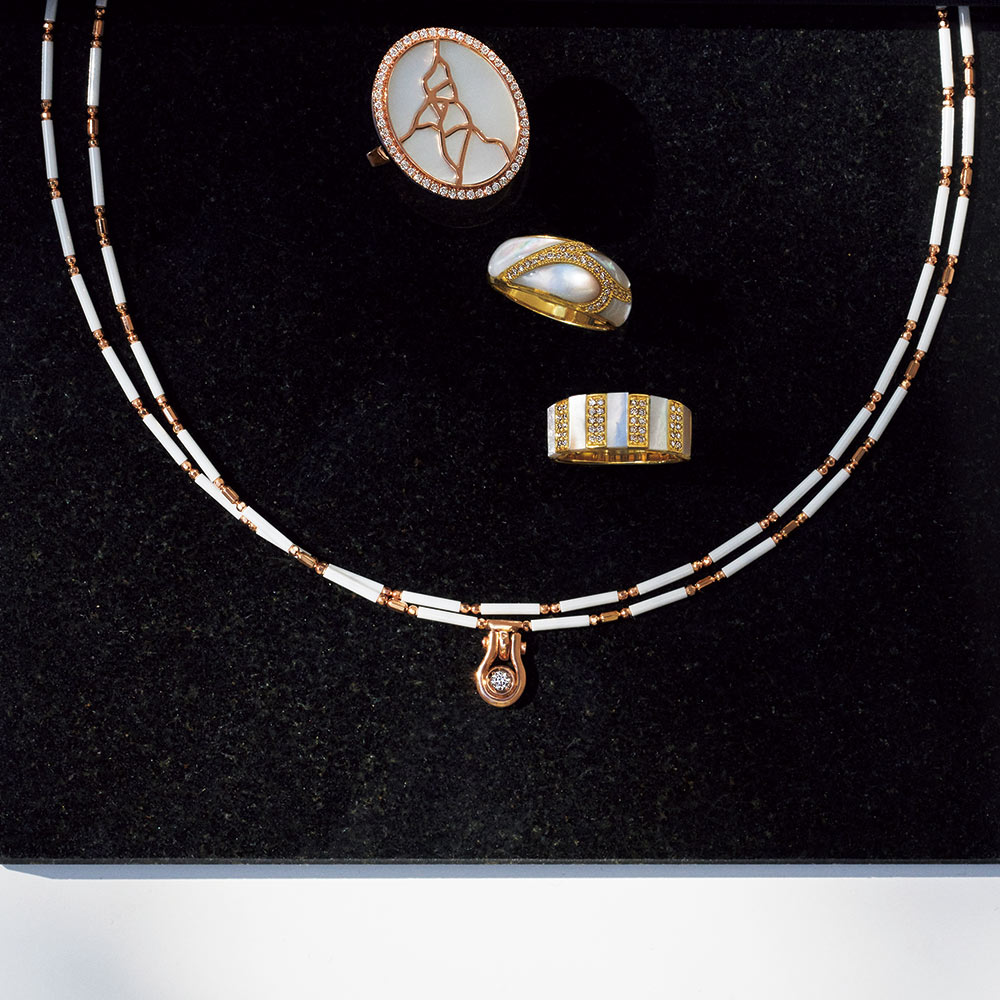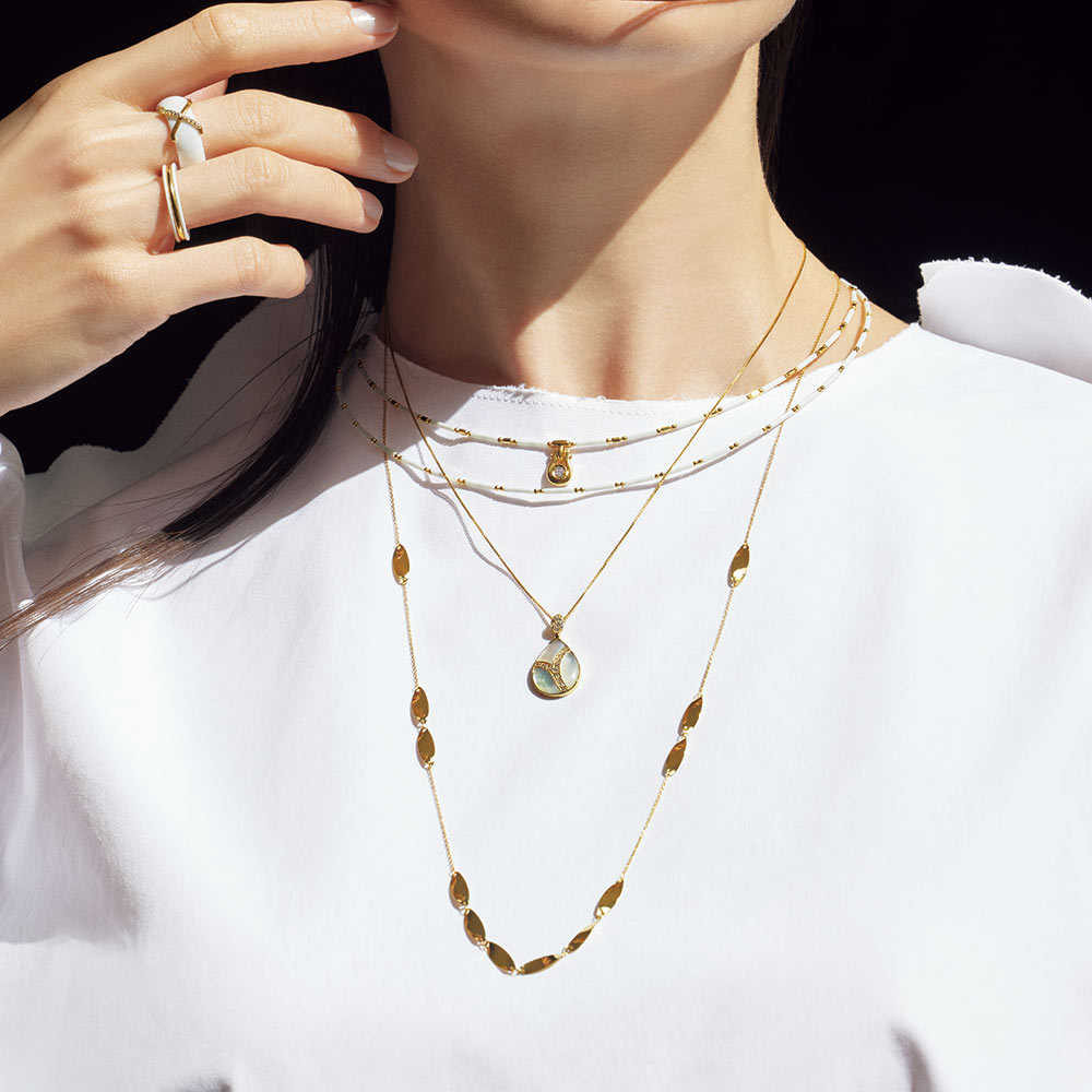 ホワイトのセラミックとゴールドのパーツを組み合わせた新感覚のネックレス。