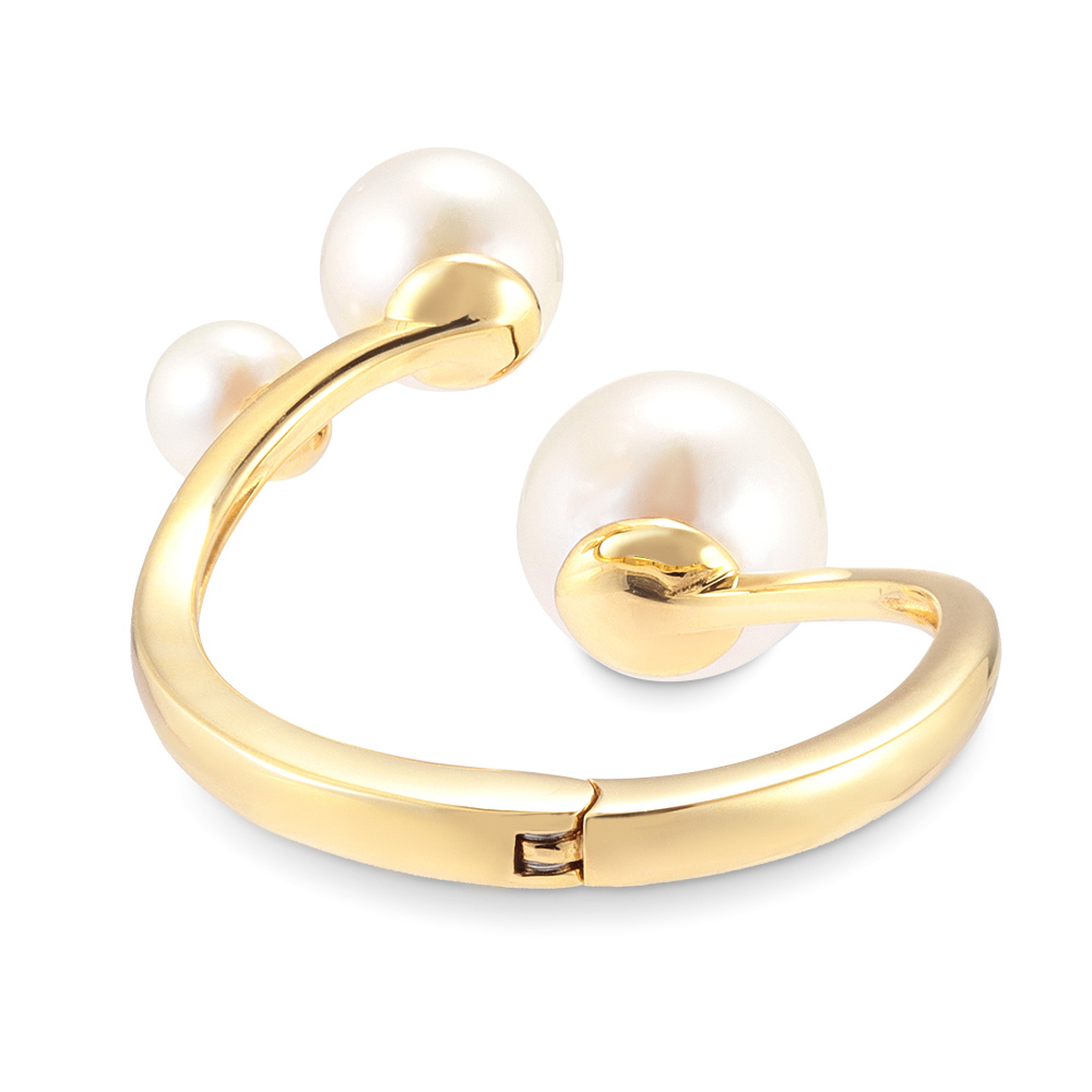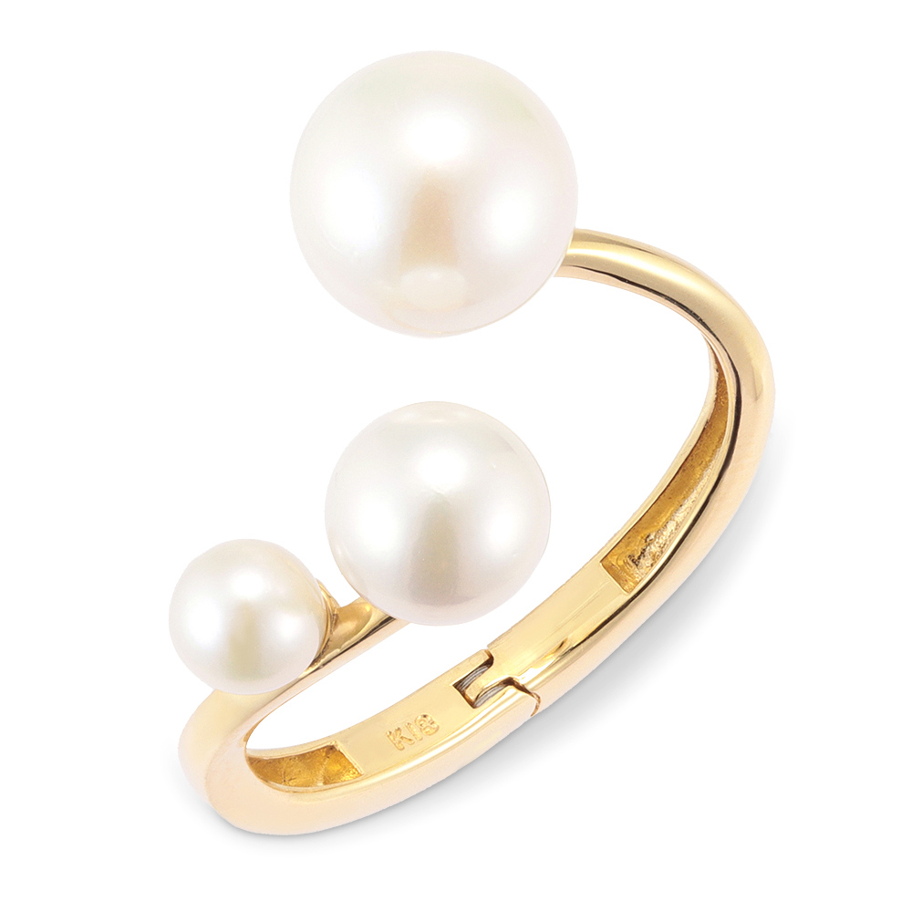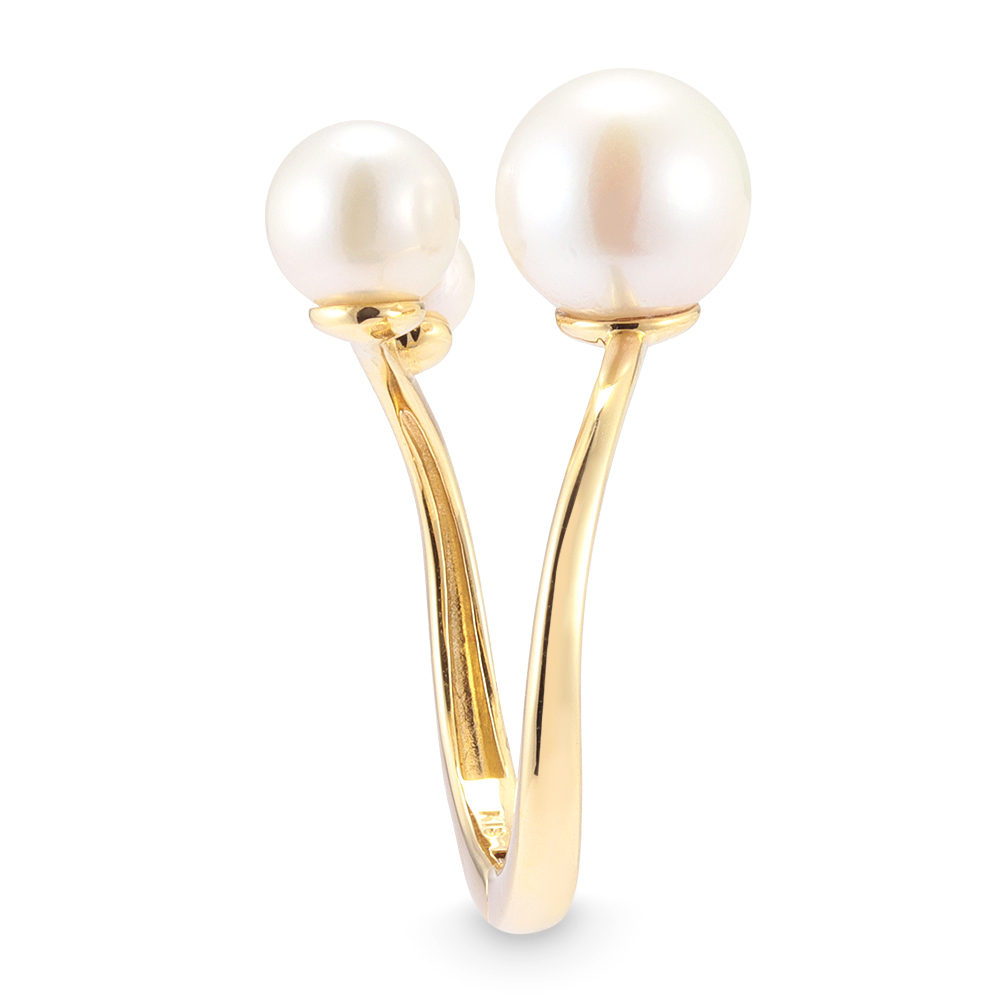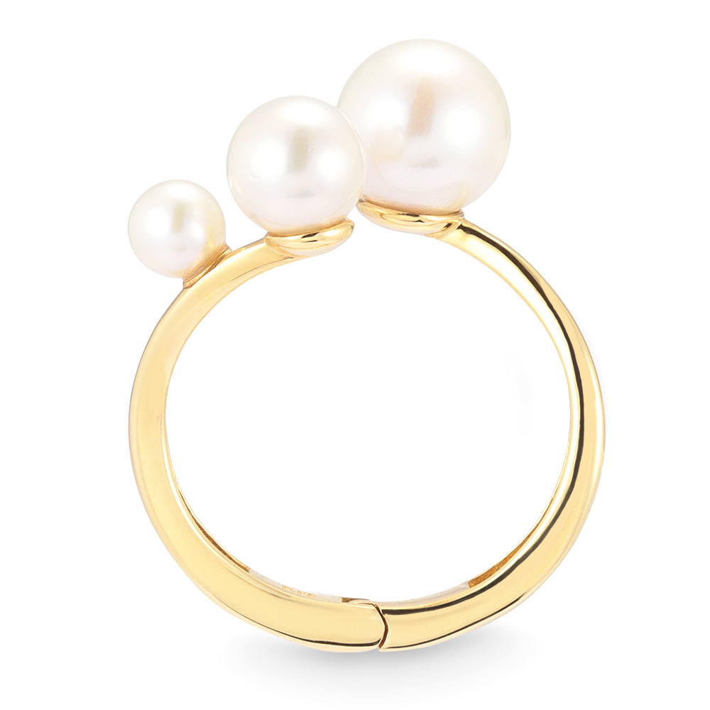 指を挟み込んで着けるアジャストリング。サイズの異なるアコヤパールをセットした可憐なデザイン。商品画像の説明