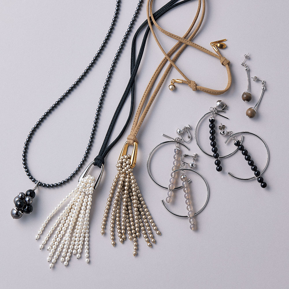 左から(ウ)グレー系イヤリング (イ)ブラック系ピアス