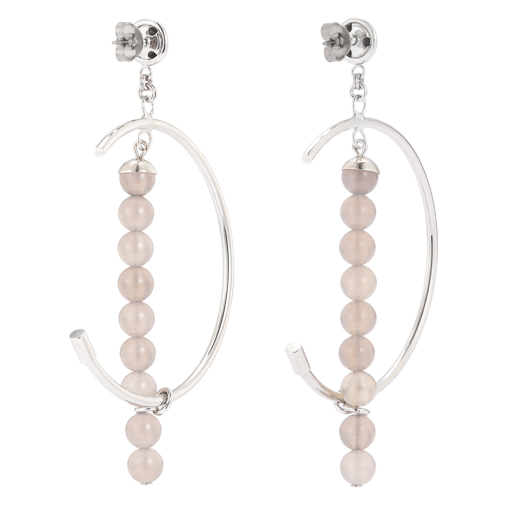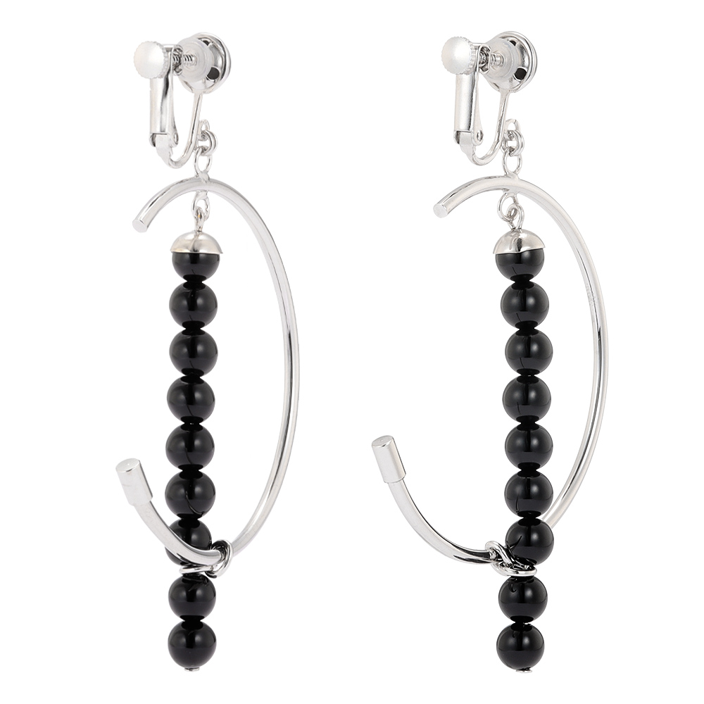 シンプルで洗練されたデザイン、品良く馴染む色彩で、着けやすさとファッショナブルな印象を両立。耳元でモードに揺れるデザインのイヤリング・ピアス。ハーフフープと天然石のIラインは軽く留められているので、程良い揺れ感。商品画像の説明
