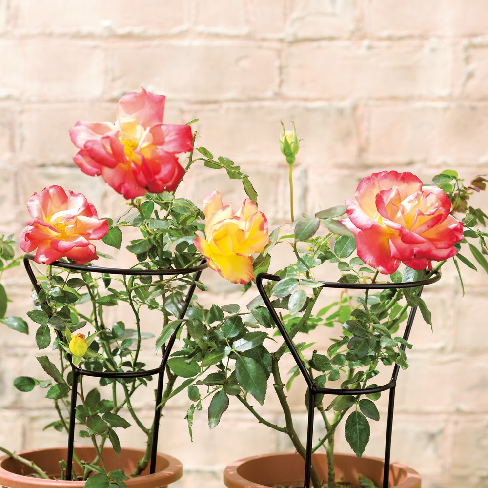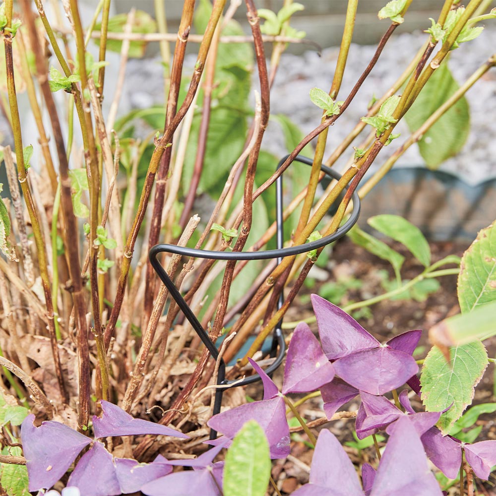 プランターや地植えで自立せず倒れたり、広がったりしている草花の支柱に。空洞のない無垢材と高い溶接技術によりとても頑丈なので、長く使えます。