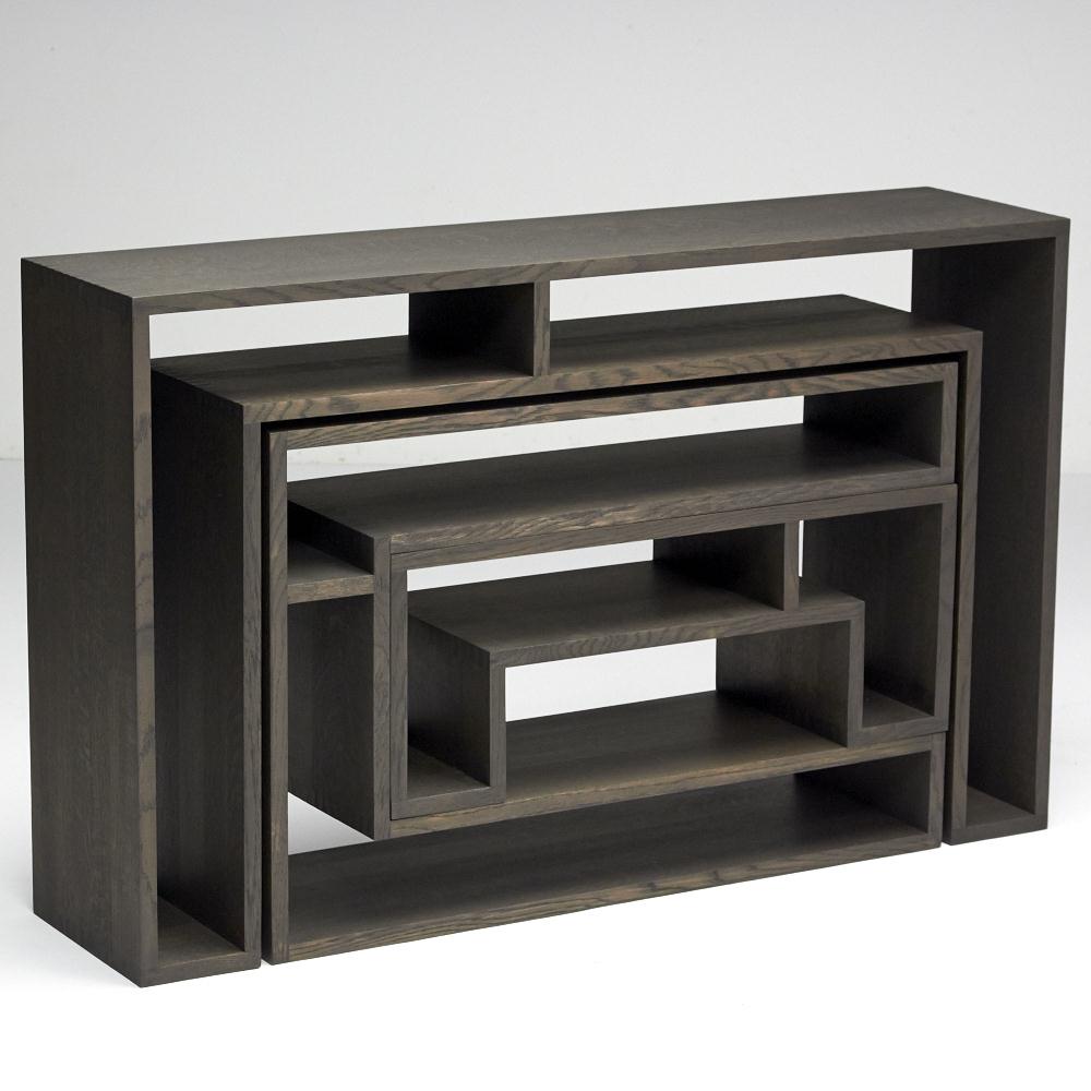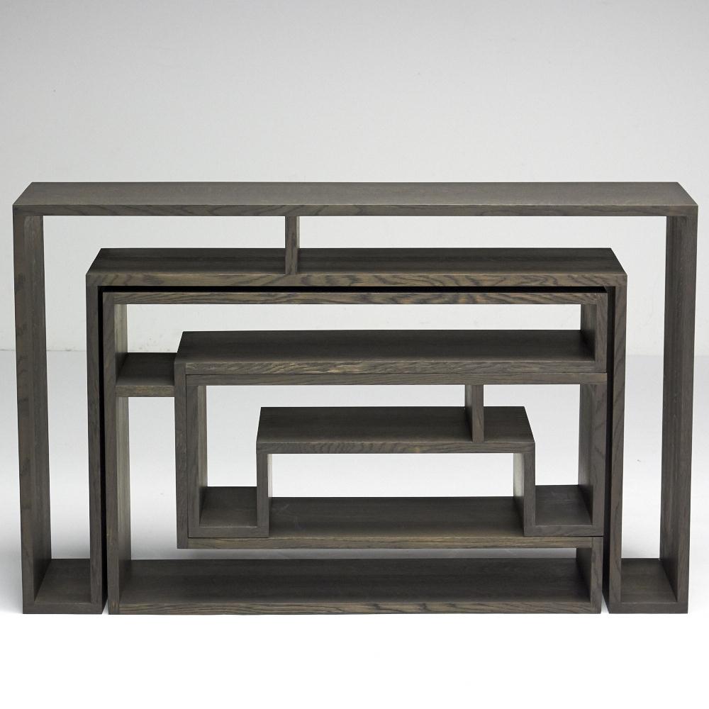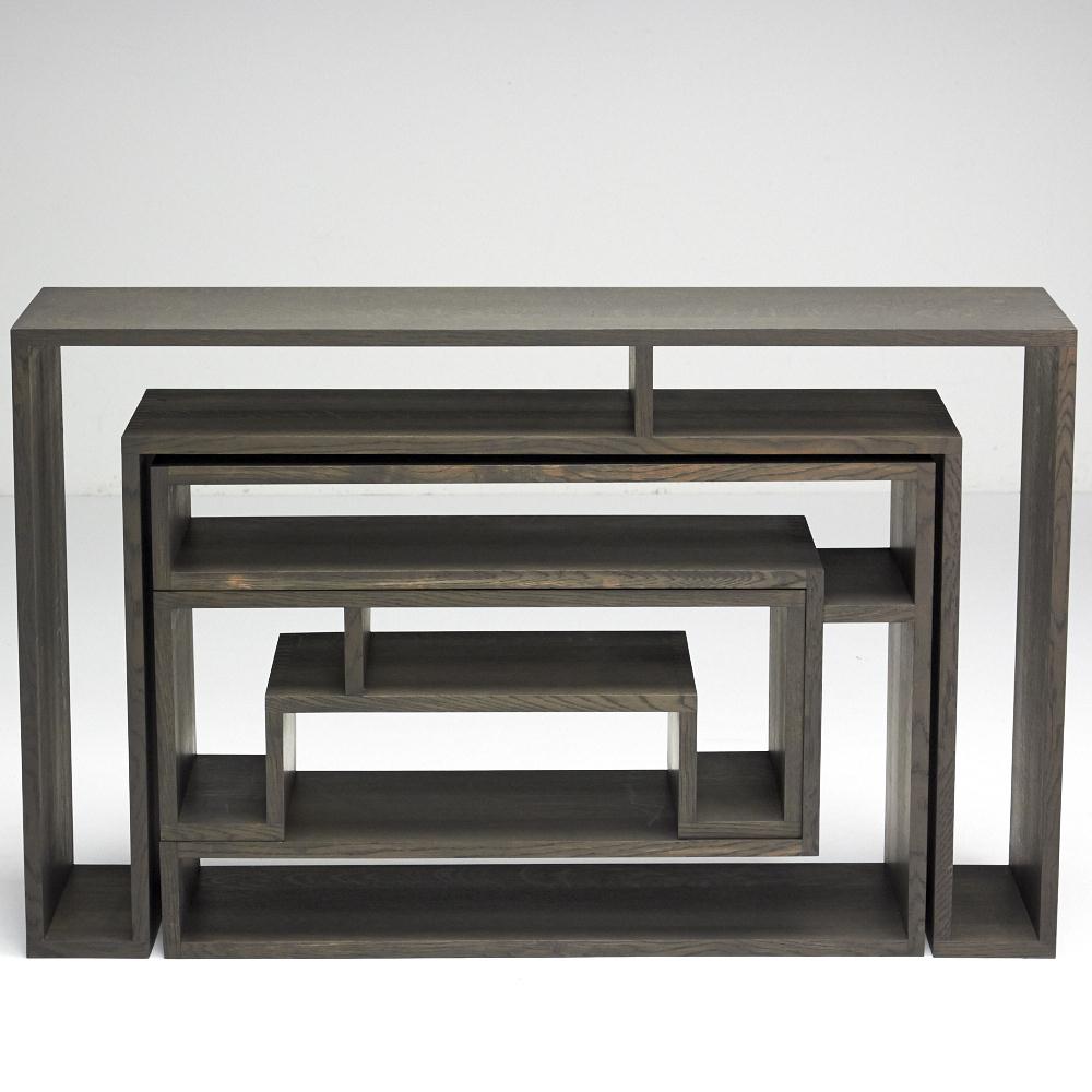 大型コンソールデスク、高さのあるコンソールテーブル、小型のリビングテーブルのセットです。