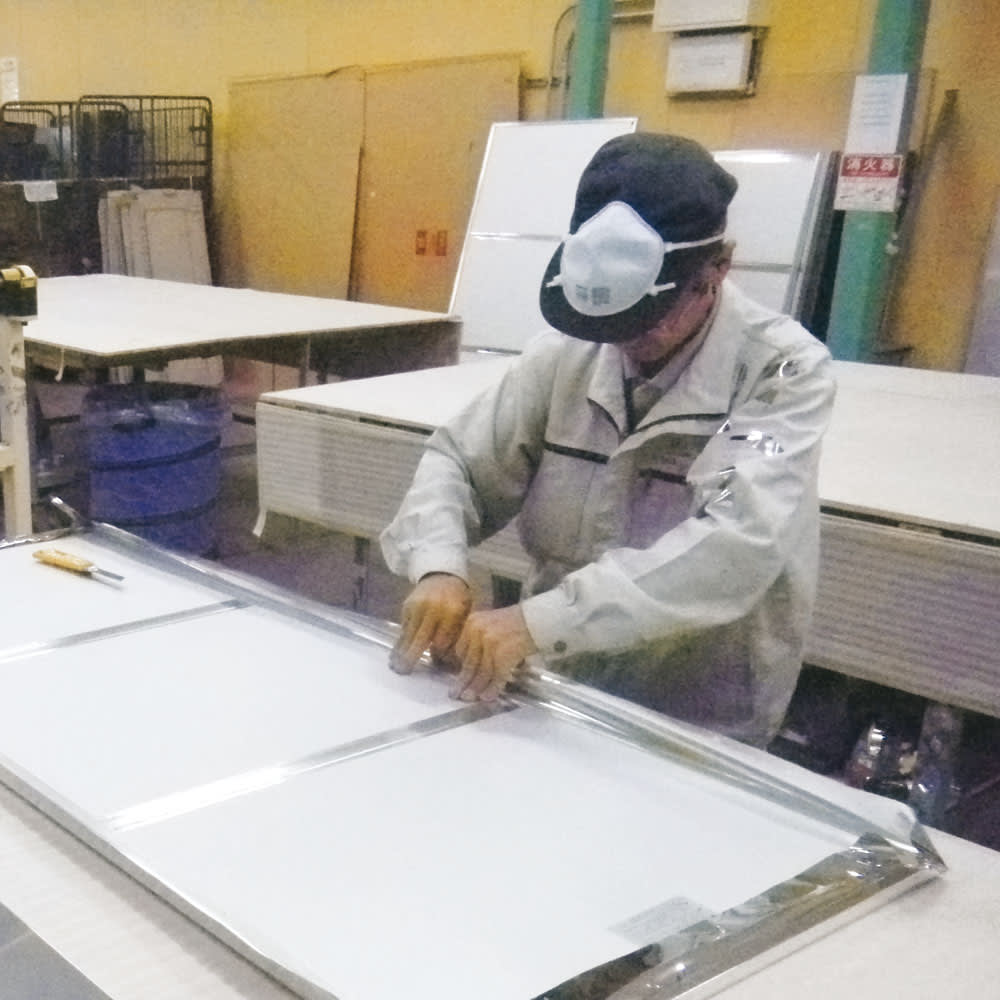 ■素材:表面…ポリエステルフィルム、飾り縁…アルミニウム、芯材…硬質ウレタンボード