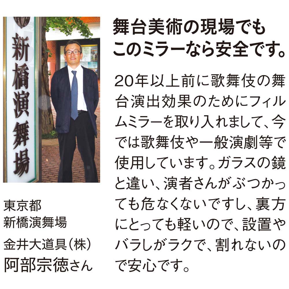 一般的なミラーと、割れない軽量フィルムミラーの比較。