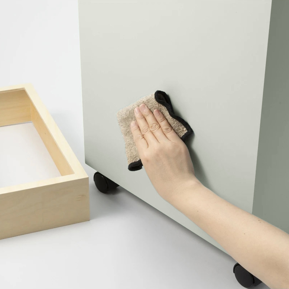 天然木とMDFを使用しており、上からウレタン塗装を施しています。普段のお手入れは、固く絞った布で水(お湯)拭きするだけで十分。汚れがひどい場合は、薄めた中性洗剤、水拭き、乾拭きの順番でお手入れしてください。