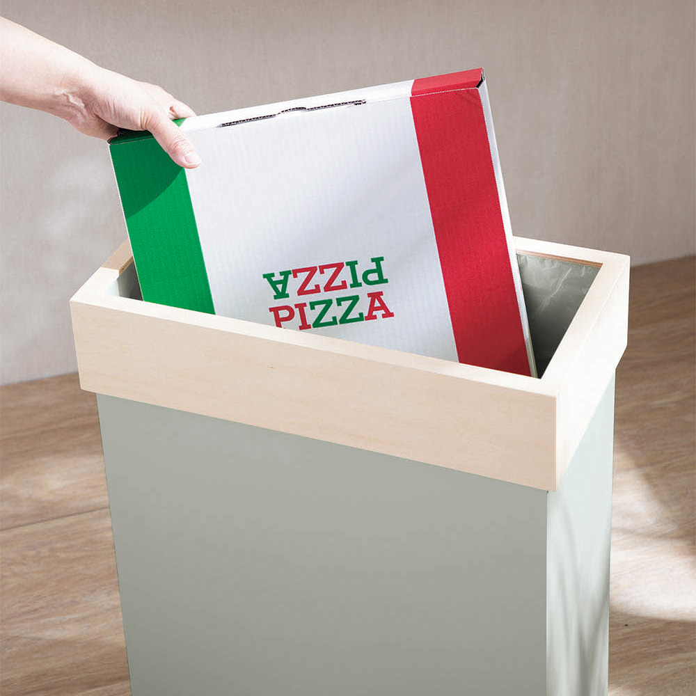 フタがないのでゴミが捨てやすい!30L以上のサイズなら、テイクアウトピザの箱を折りたたまずにそのまま捨てられます。