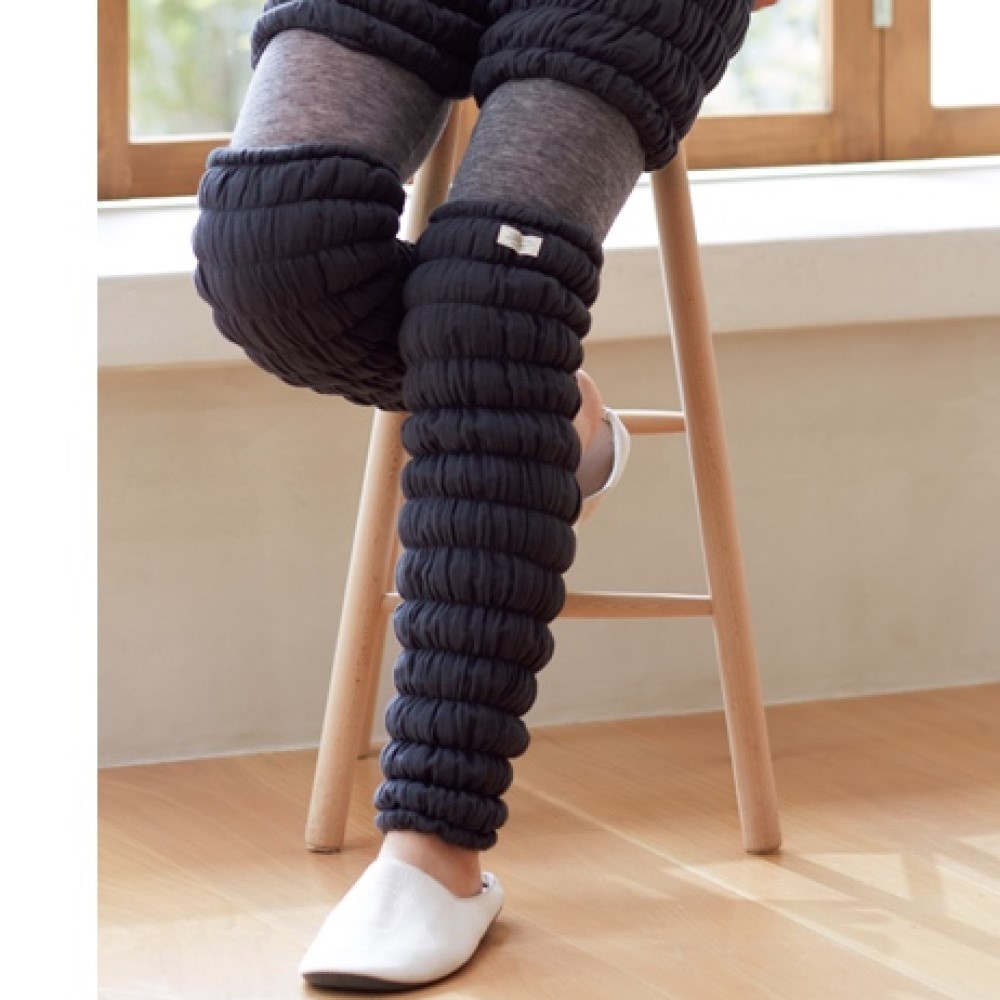見た目は分厚くて大きめですが、重さはウエストが337g、ロングレッグウォーマーは約320gと軽量。両面にコットン100%のダブルガーゼを使用しているため、メーカー従来品と比べて約10%ほど軽くなっています。(※「ロングレッグウォーマー」と同サイズのメーカー従来品と比較。)