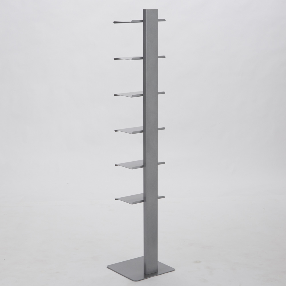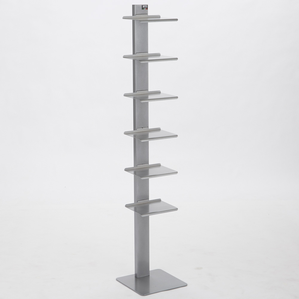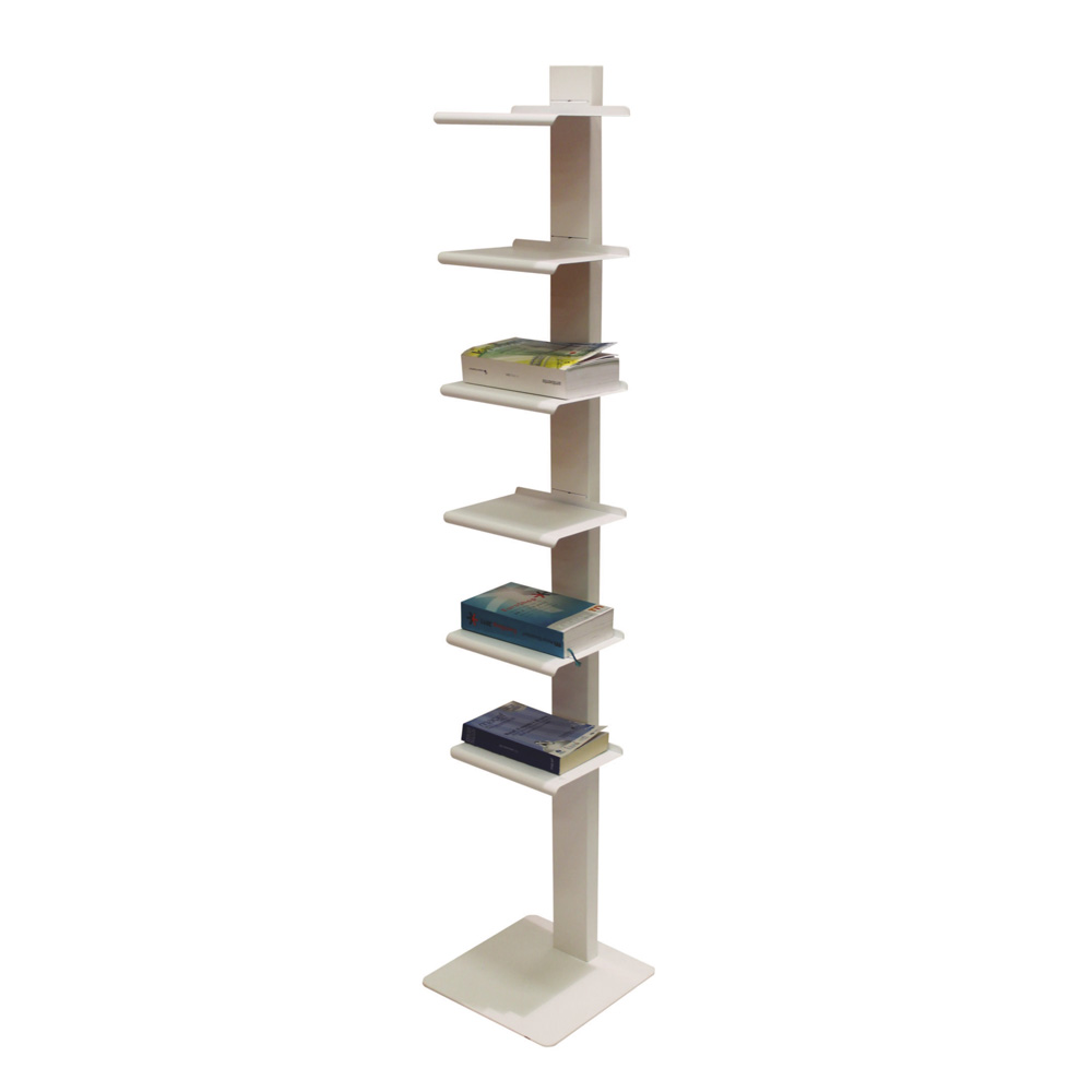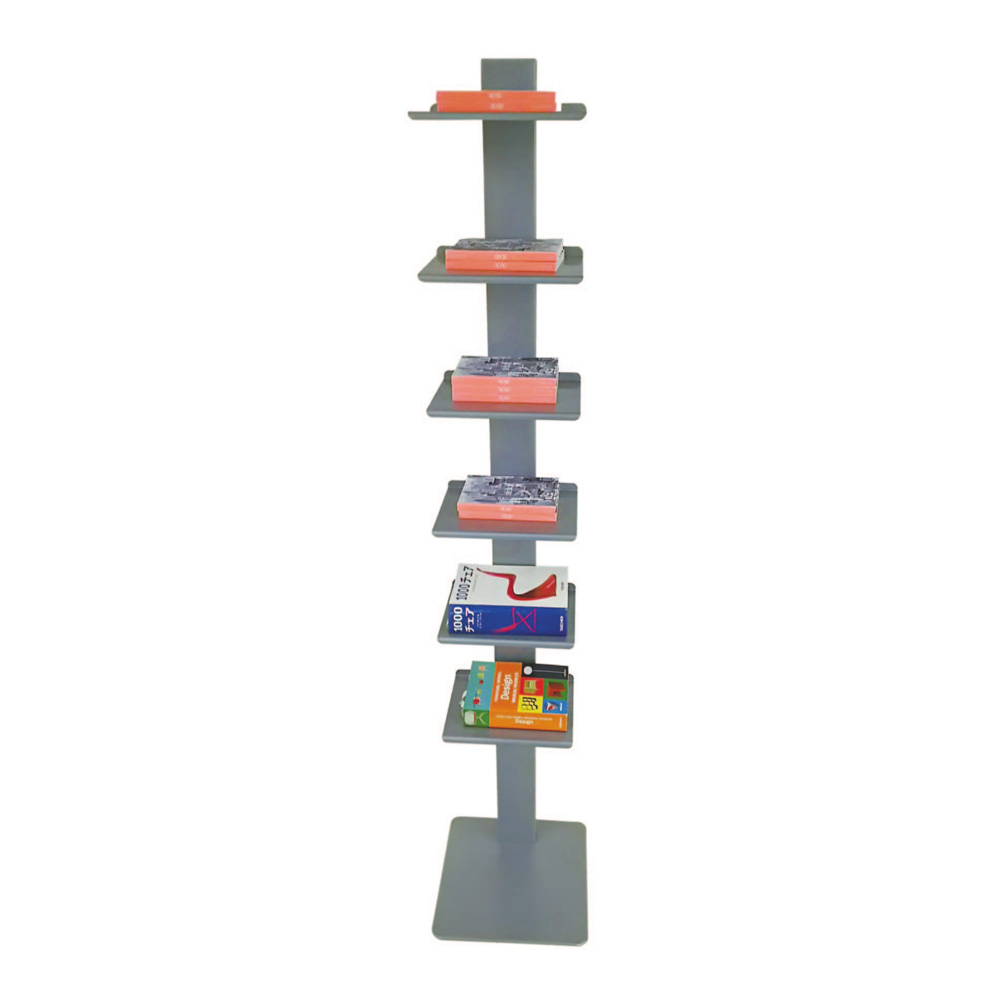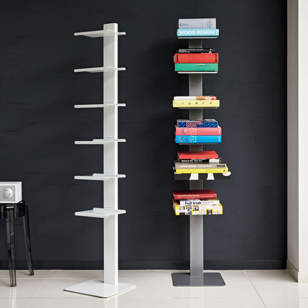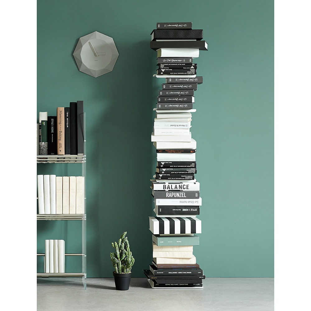 左からホワイト、グレー シンプルを極めた佇まいの、イタリア製のブックシェルフ。本を無造作に置くだけでも様になり、お気に入りの小物を並べて見せる収納にも。棚板の位置は固定されています。