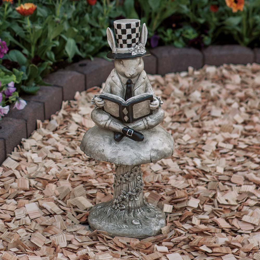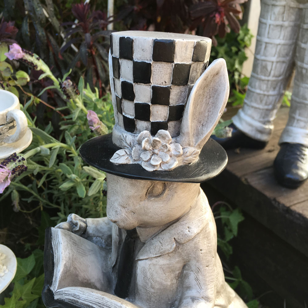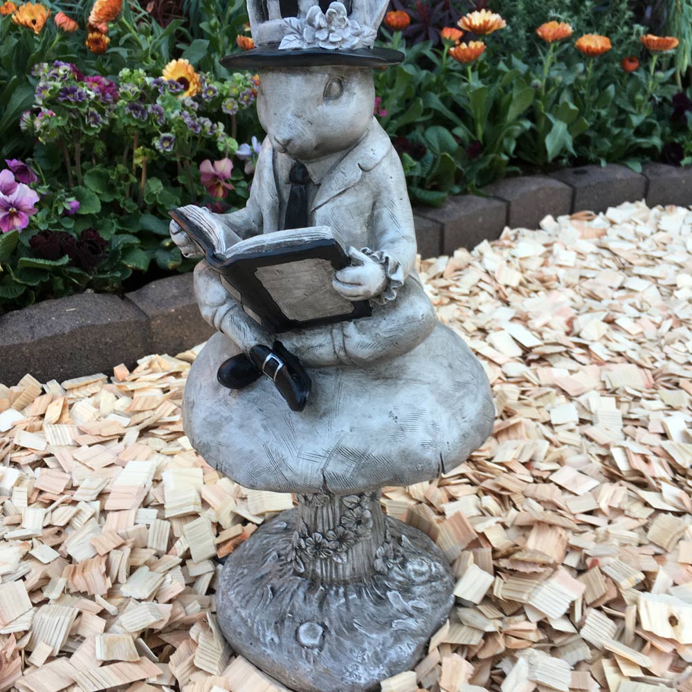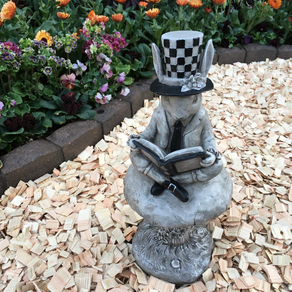 ティーパーティを繰り広げるウサギが庭に物語性をプラス。ストーン調のレジン素材が大人っぽい印象です。